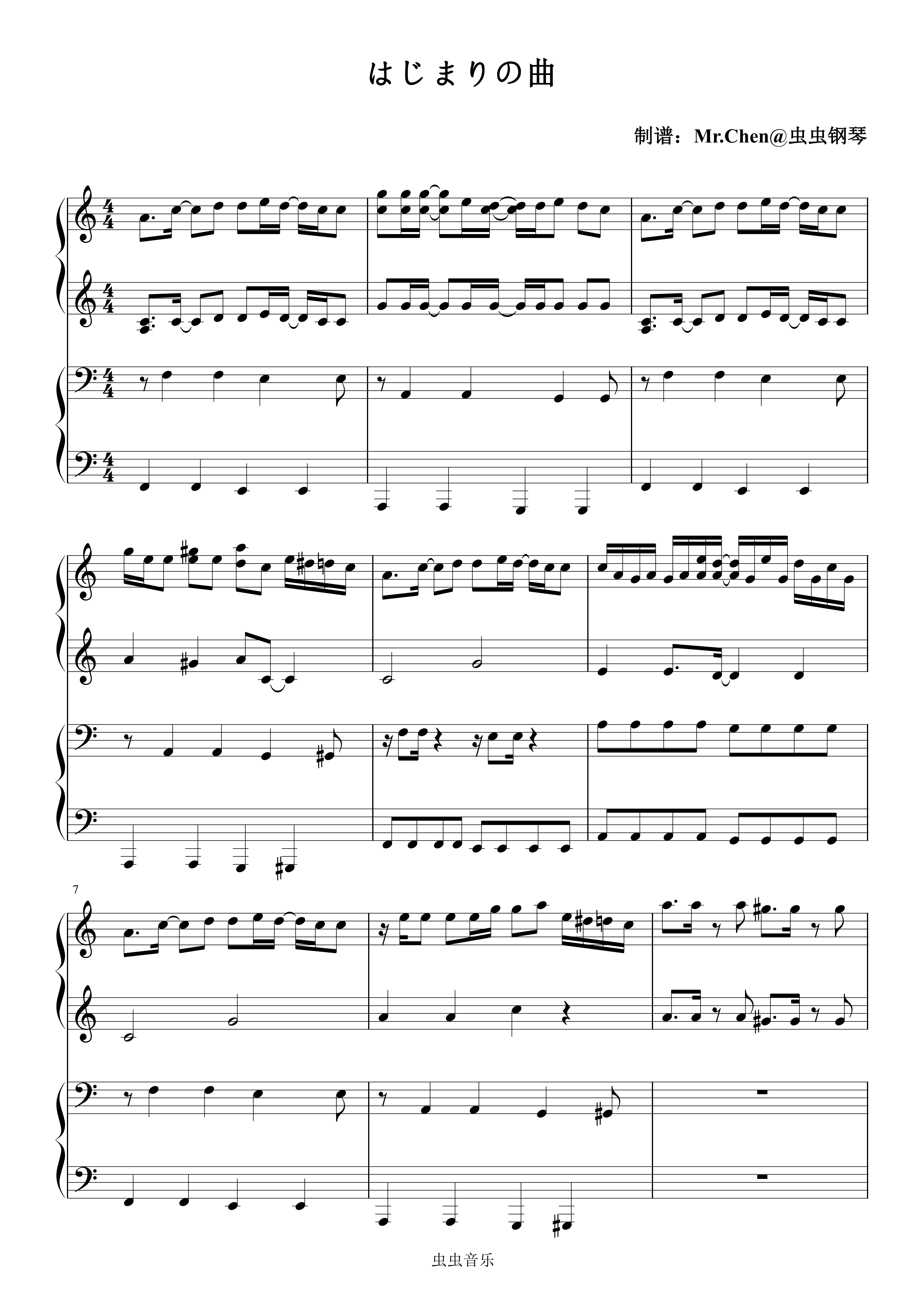 钢琴谱:はじまりの曲 (四手联弹)C调 - 开篇之曲
