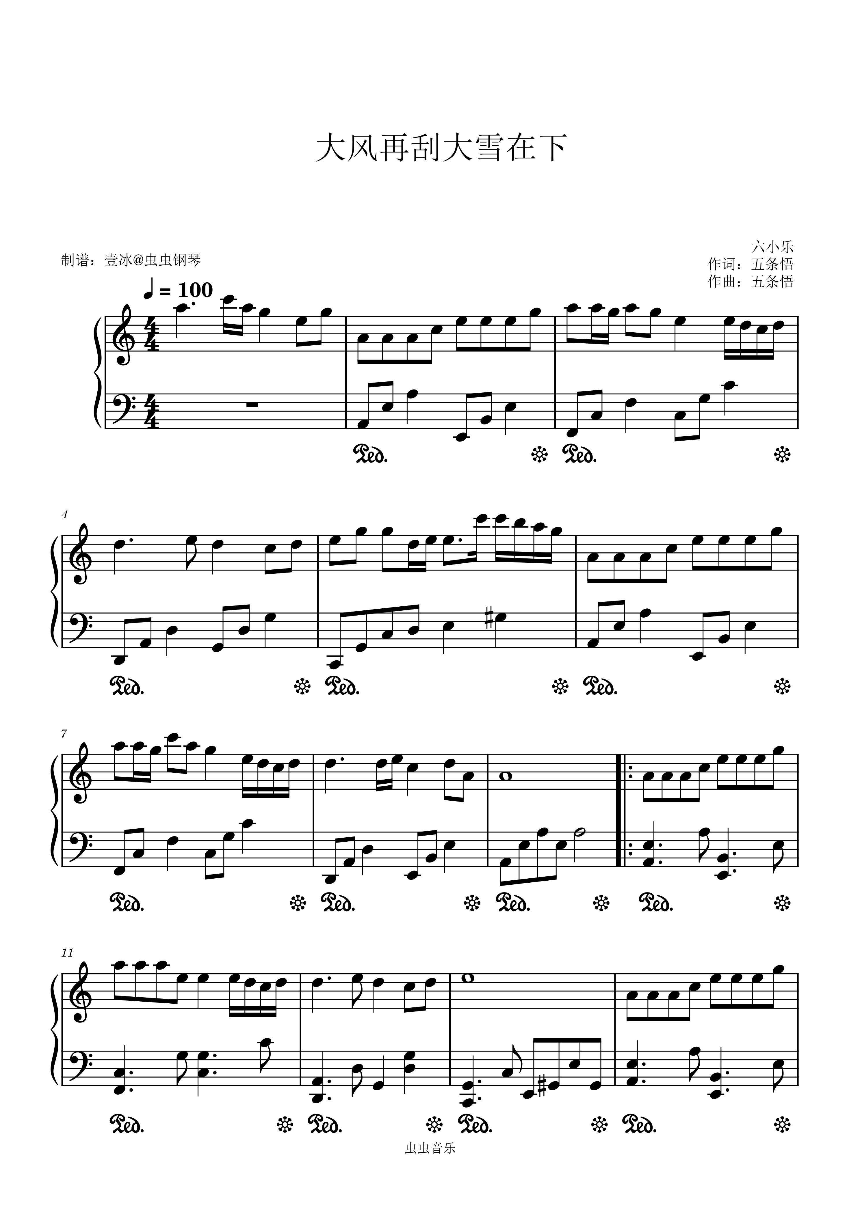 • 大雪钢琴简谱 C#调 数字双手 偏生梓归