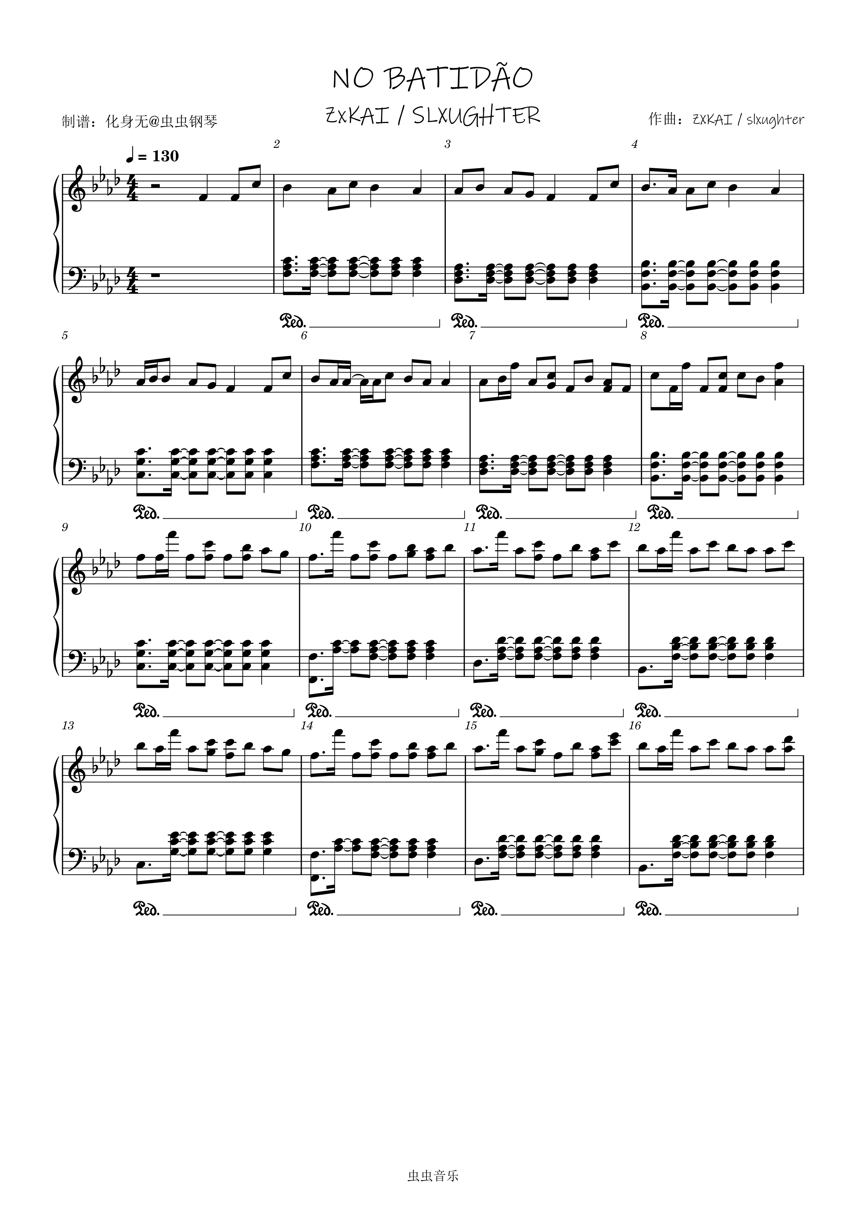 钢琴谱:NO BATIDÃO 原调独奏版 化身无编配