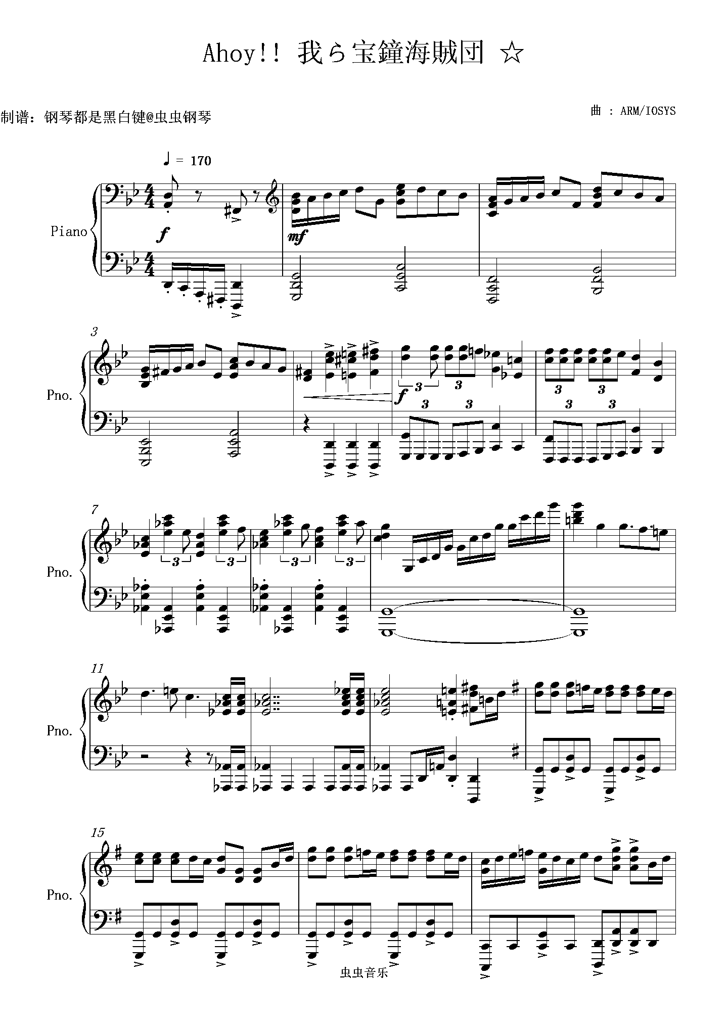 钢琴谱:【宝钟玛琳】Ahoy!! 我等即是宝钟海贼团☆
