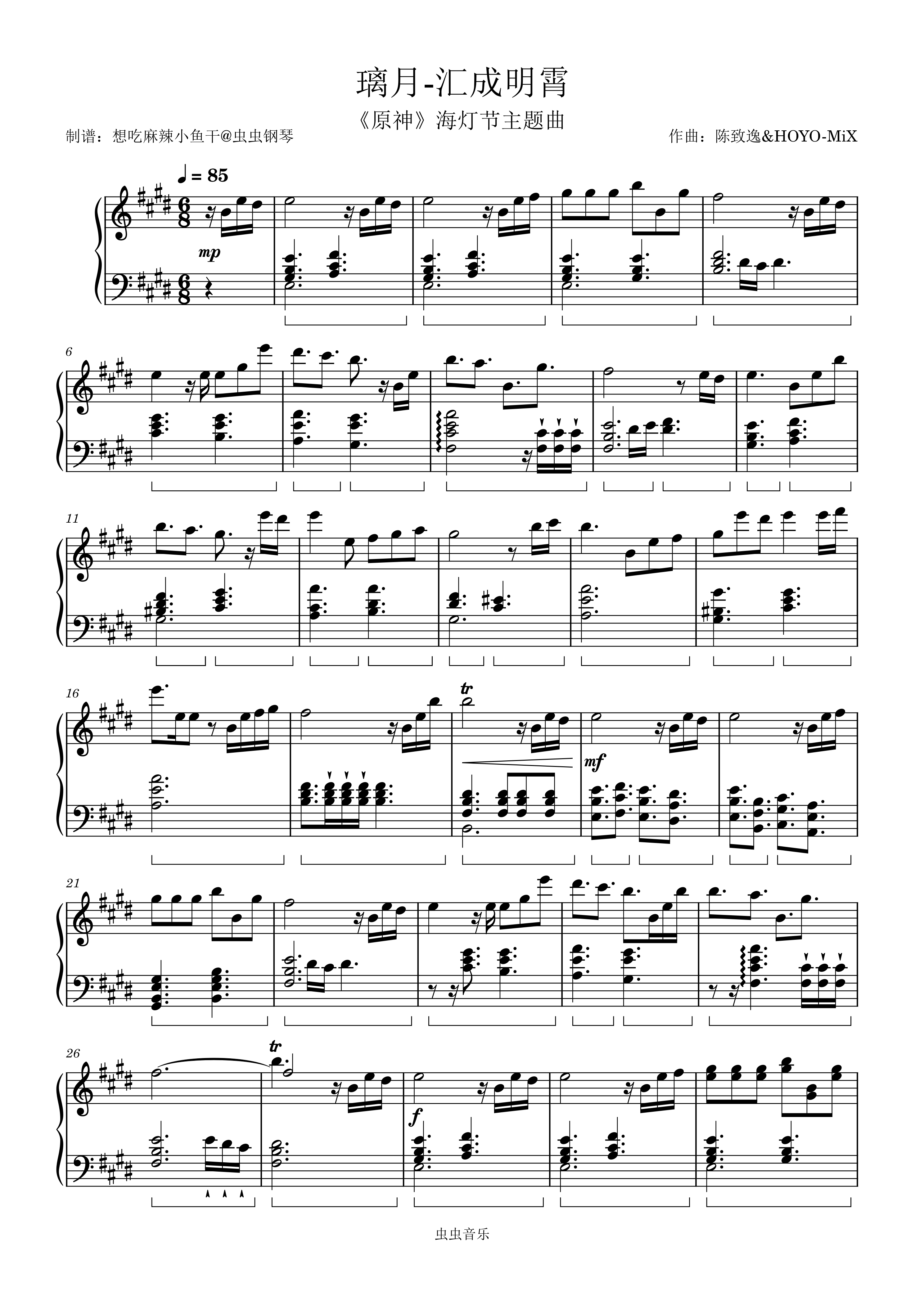 钢琴谱:璃月-汇成明霄(《原神》海灯节音乐)