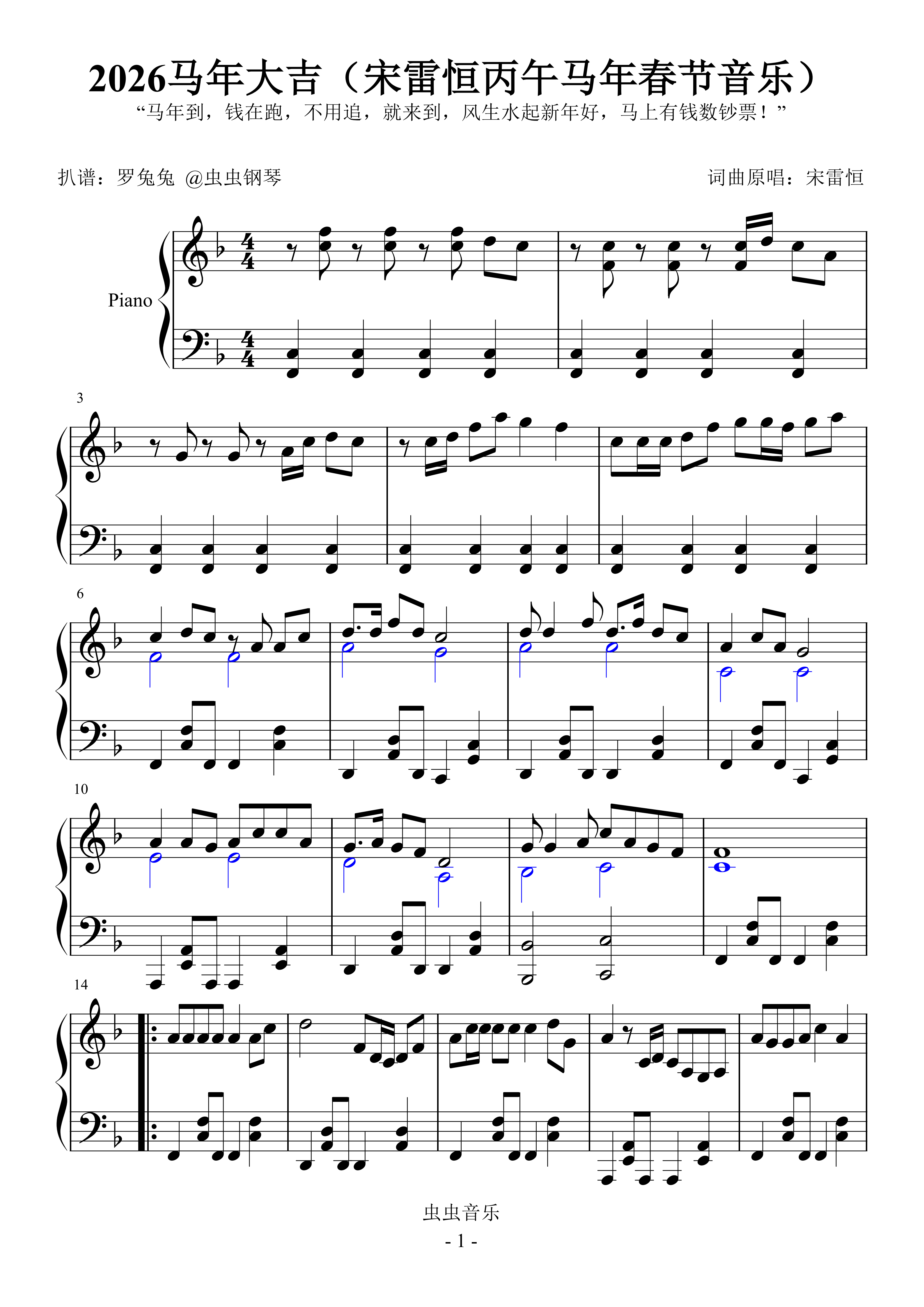 钢琴谱:2026马年大吉(宋雷恒丙午马年春节音乐)
