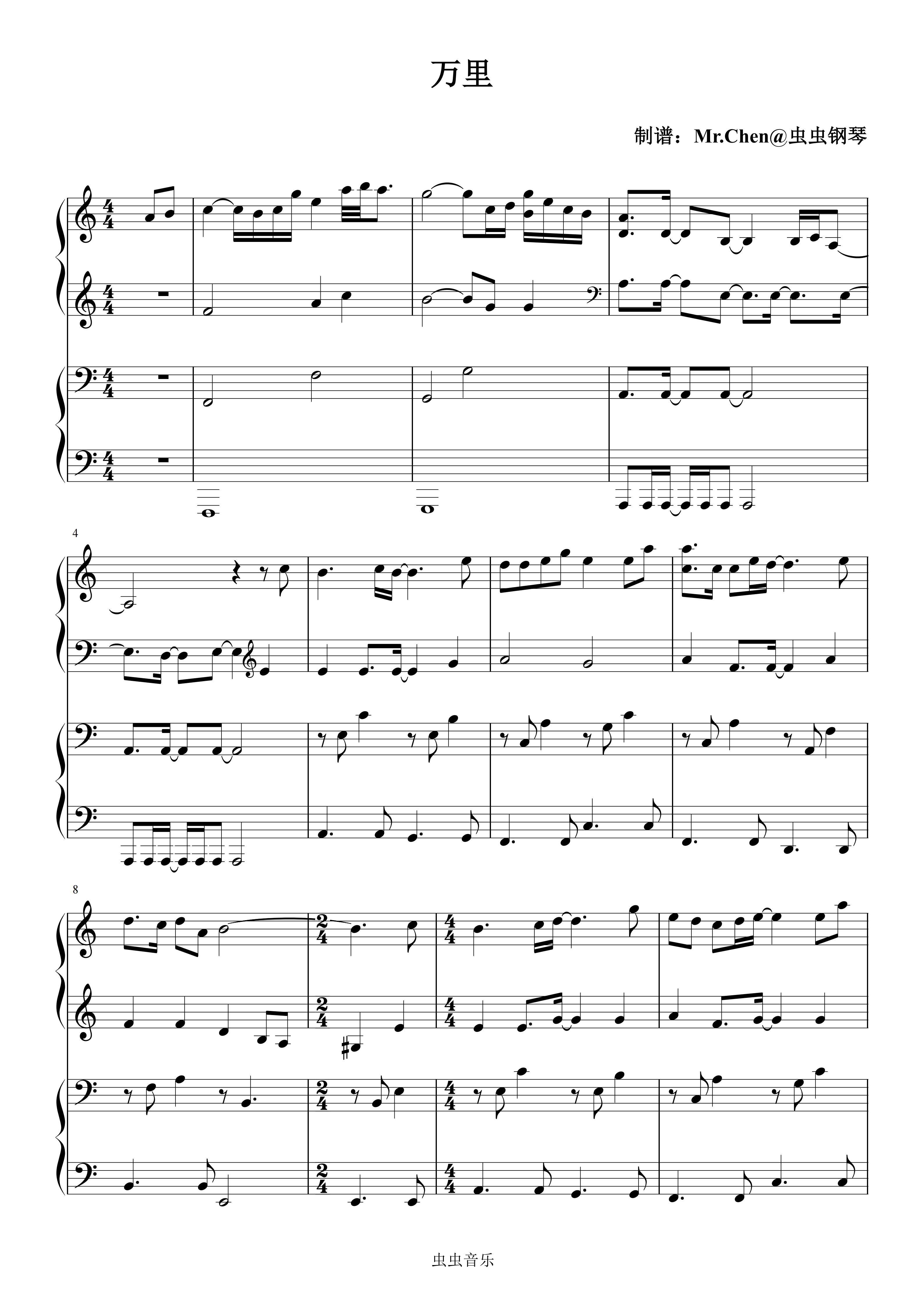 • 万里归途钢琴简谱 C调 数字双手 唐汉霄,小岛