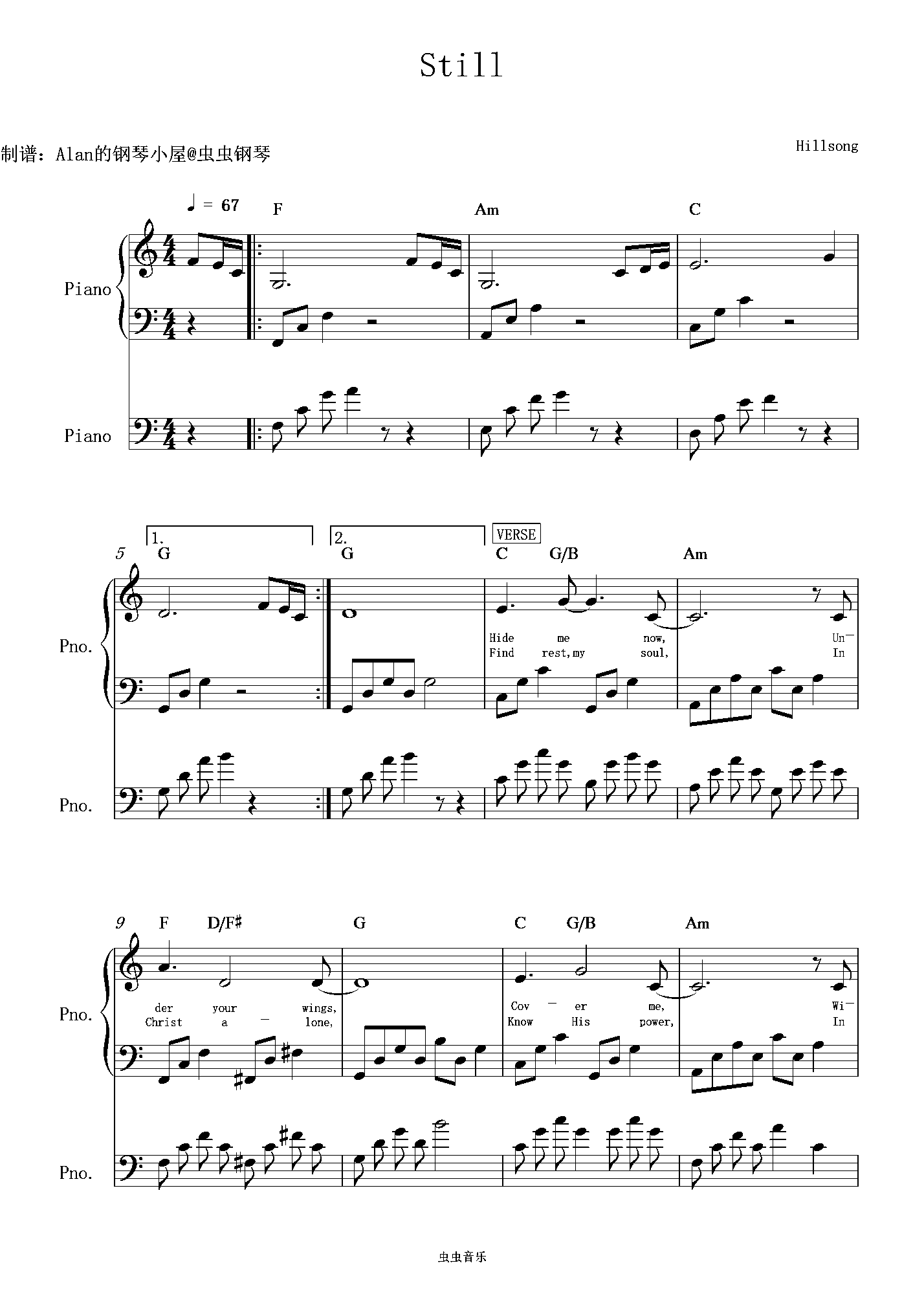 钢琴谱:Still-Hillsong Worship(山丘之歌敬拜)