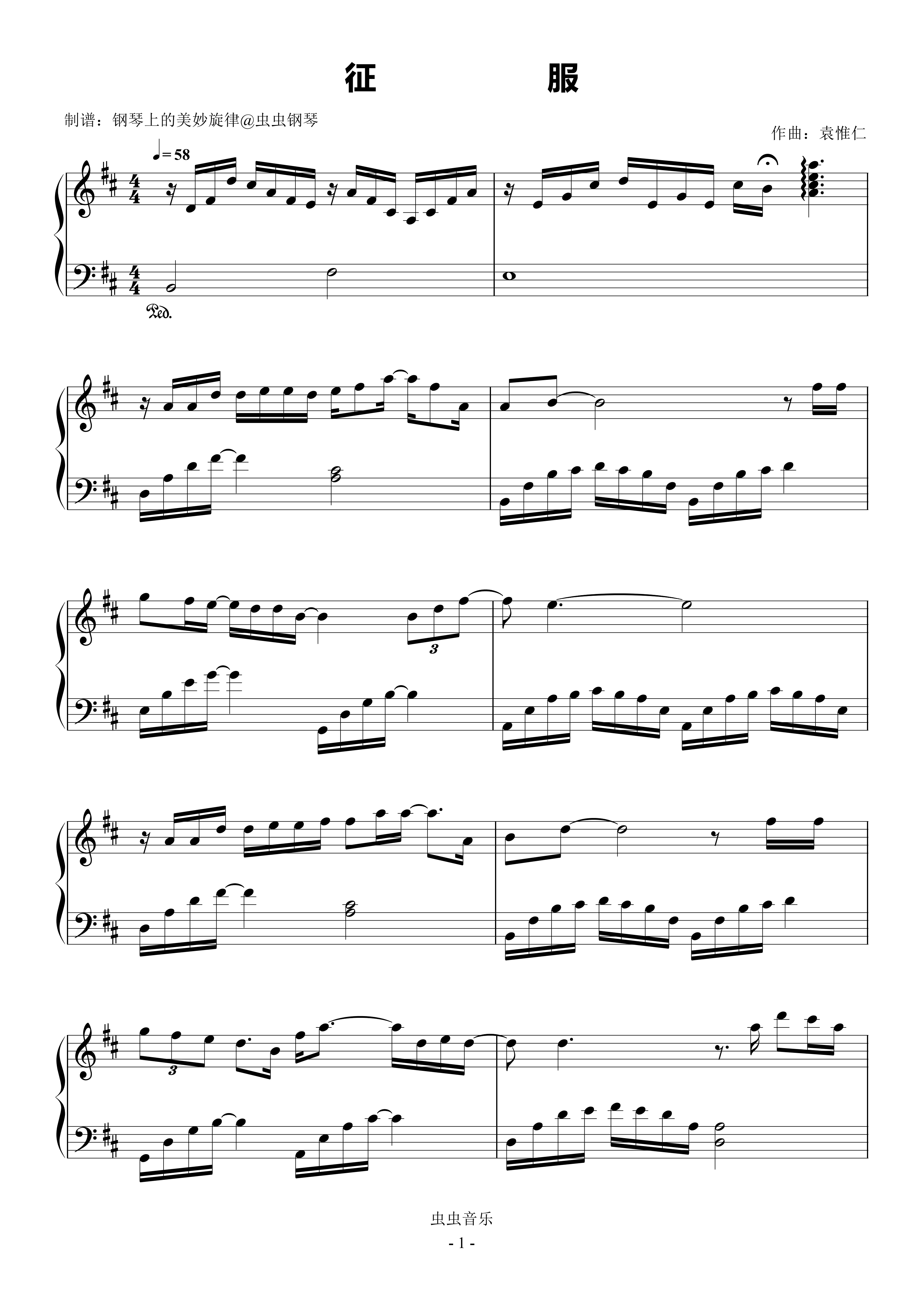 钢琴谱:征服 原调简易版 袁惟仁 怀念作曲家袁惟仁老师