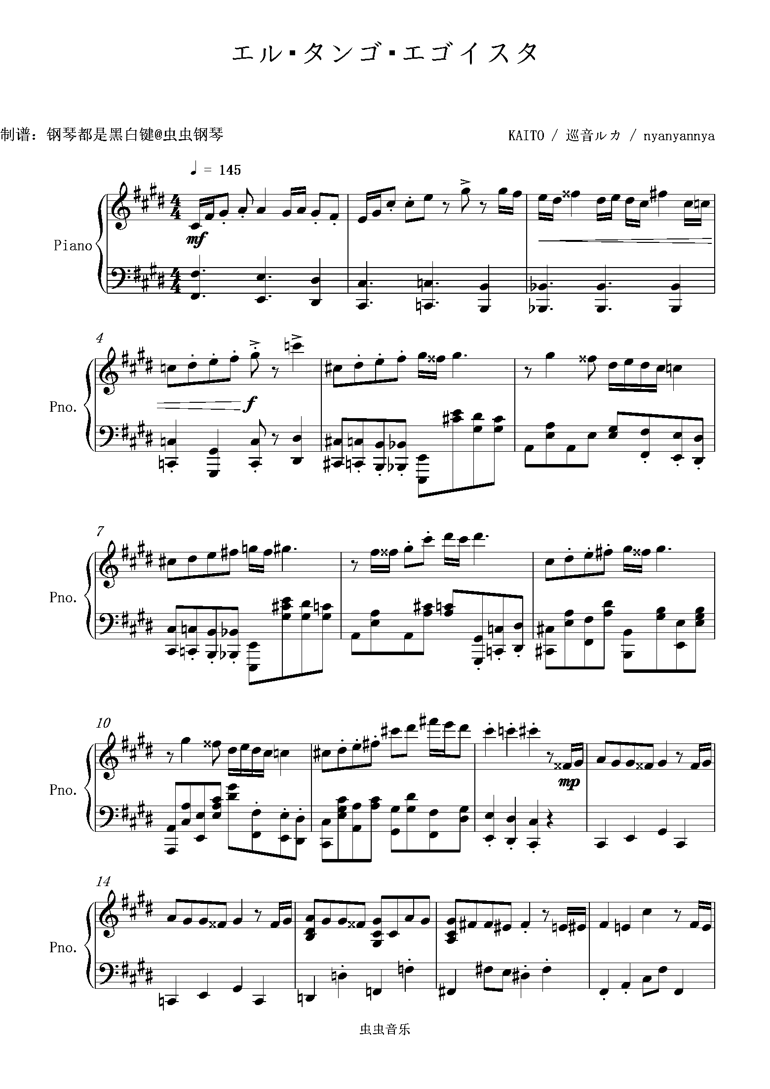 钢琴谱:[ 巡音ルカ]エル・タンゴ・エゴイスタ