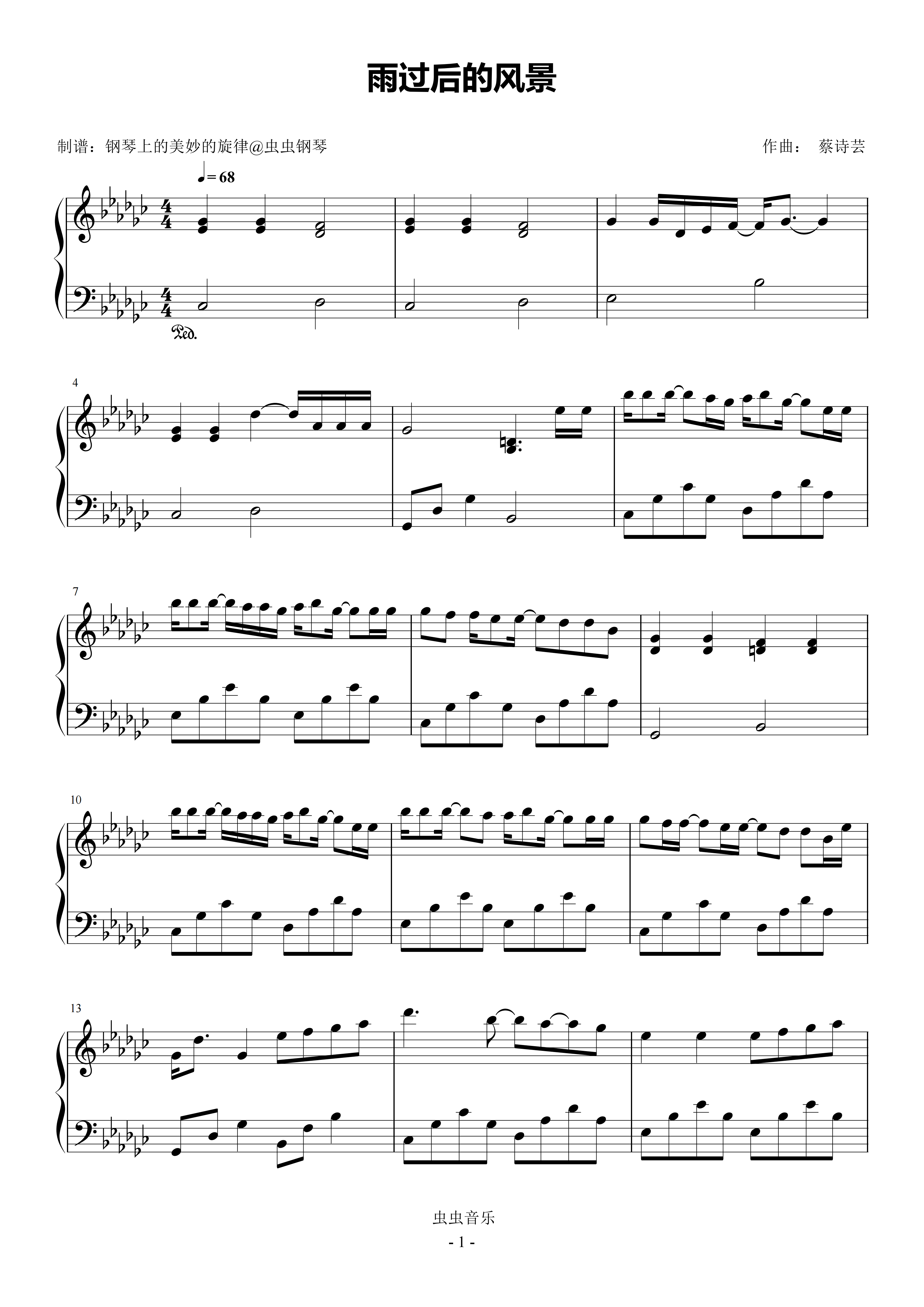 钢琴谱:雨过后的风景 原调简易版 蔡诗芸