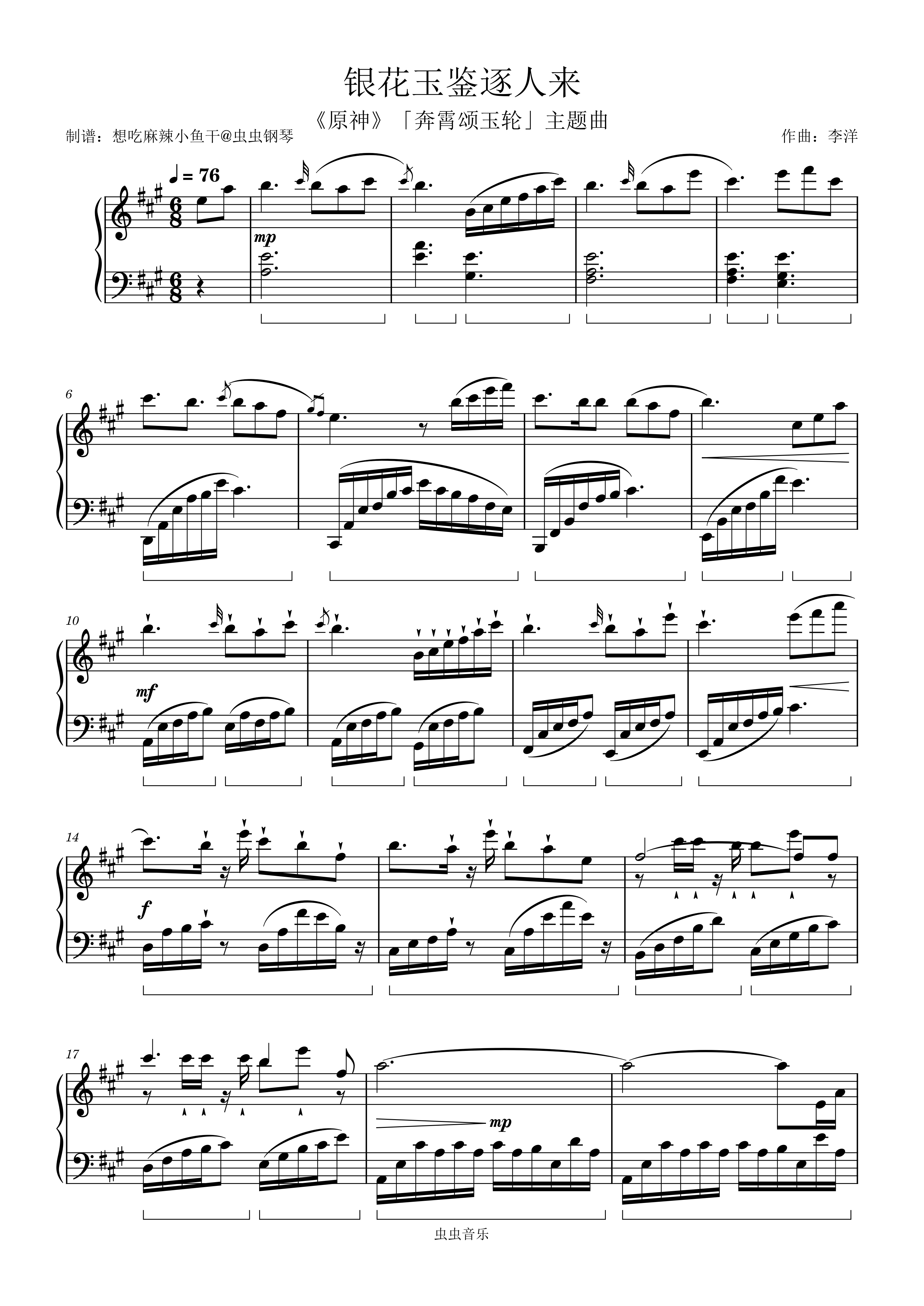 钢琴谱:银花玉鉴逐人来(《原神》「奔霄颂玉轮」活动音乐)
