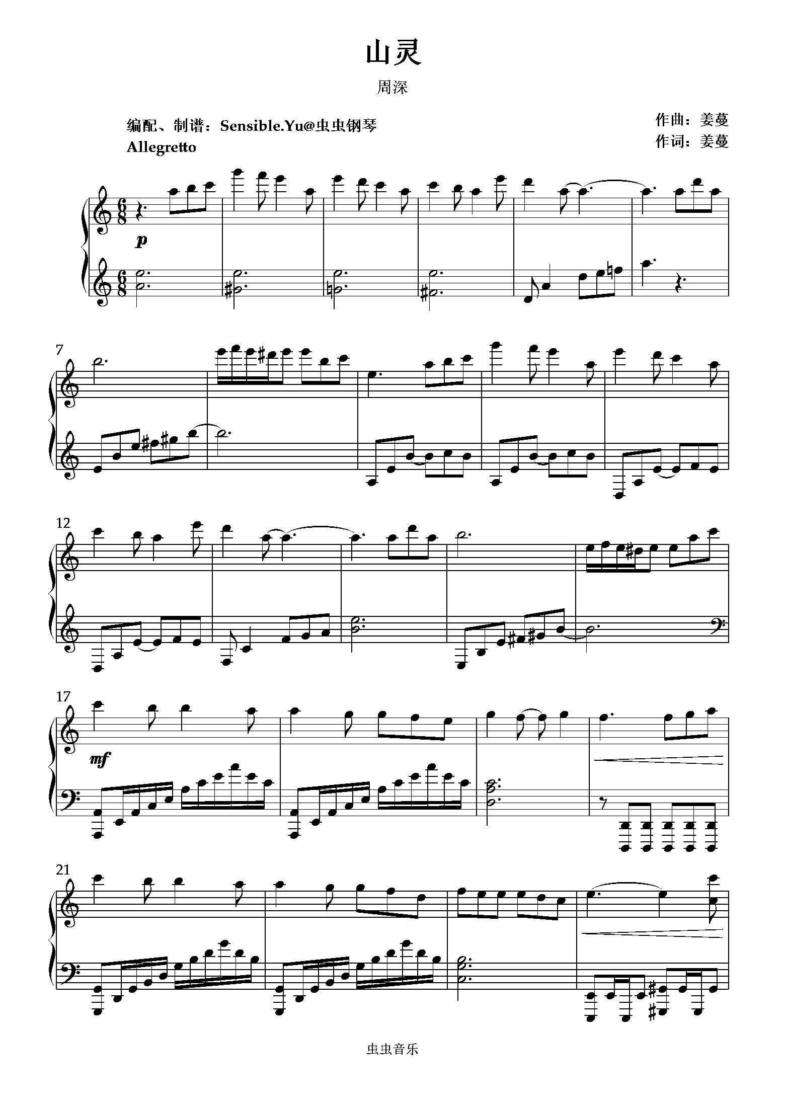 钢琴谱:山灵(改编:Sensible.Yu)(音乐缘计划)
