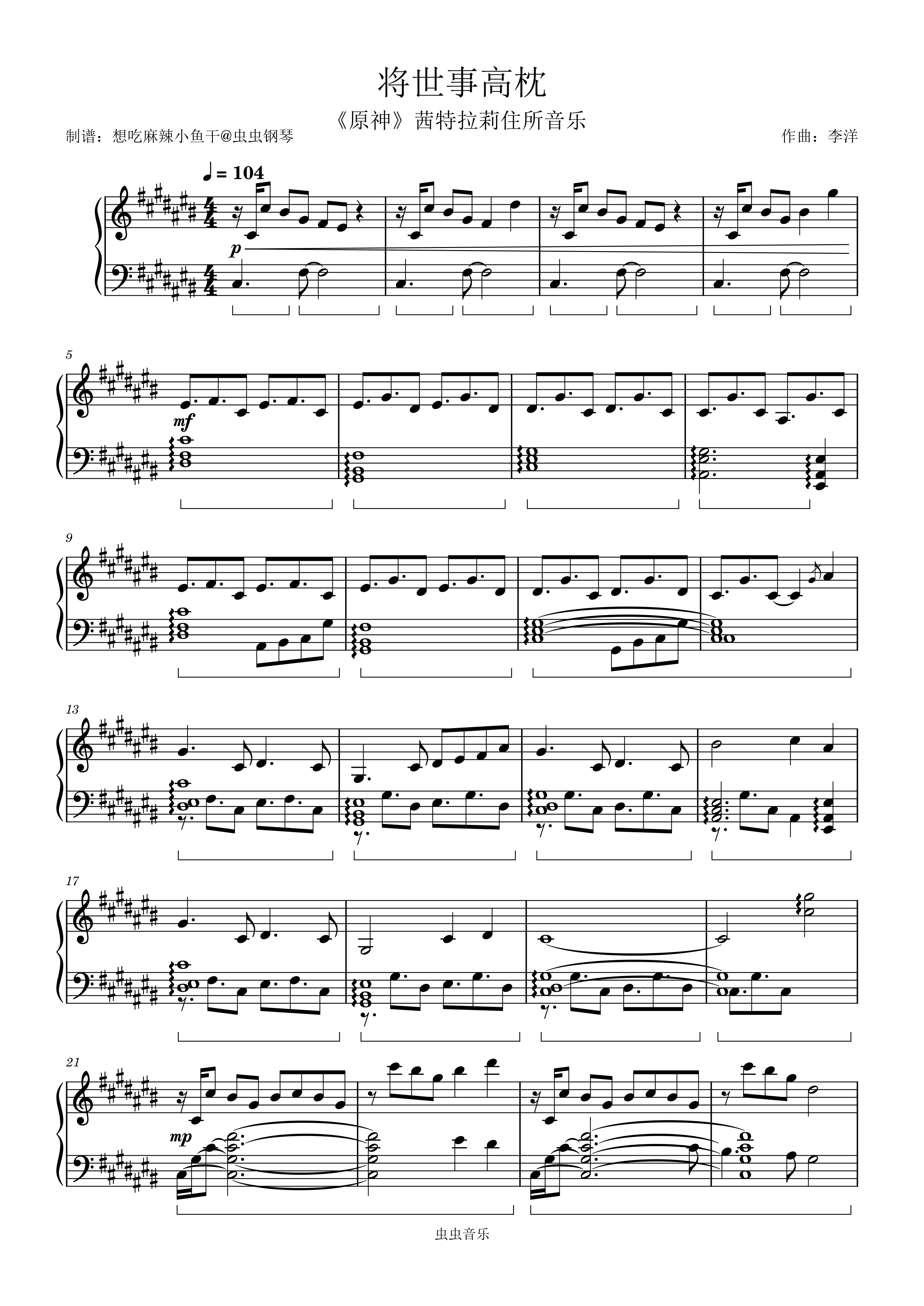 钢琴谱:将世事高枕(《原神》茜特拉莉房间音乐)