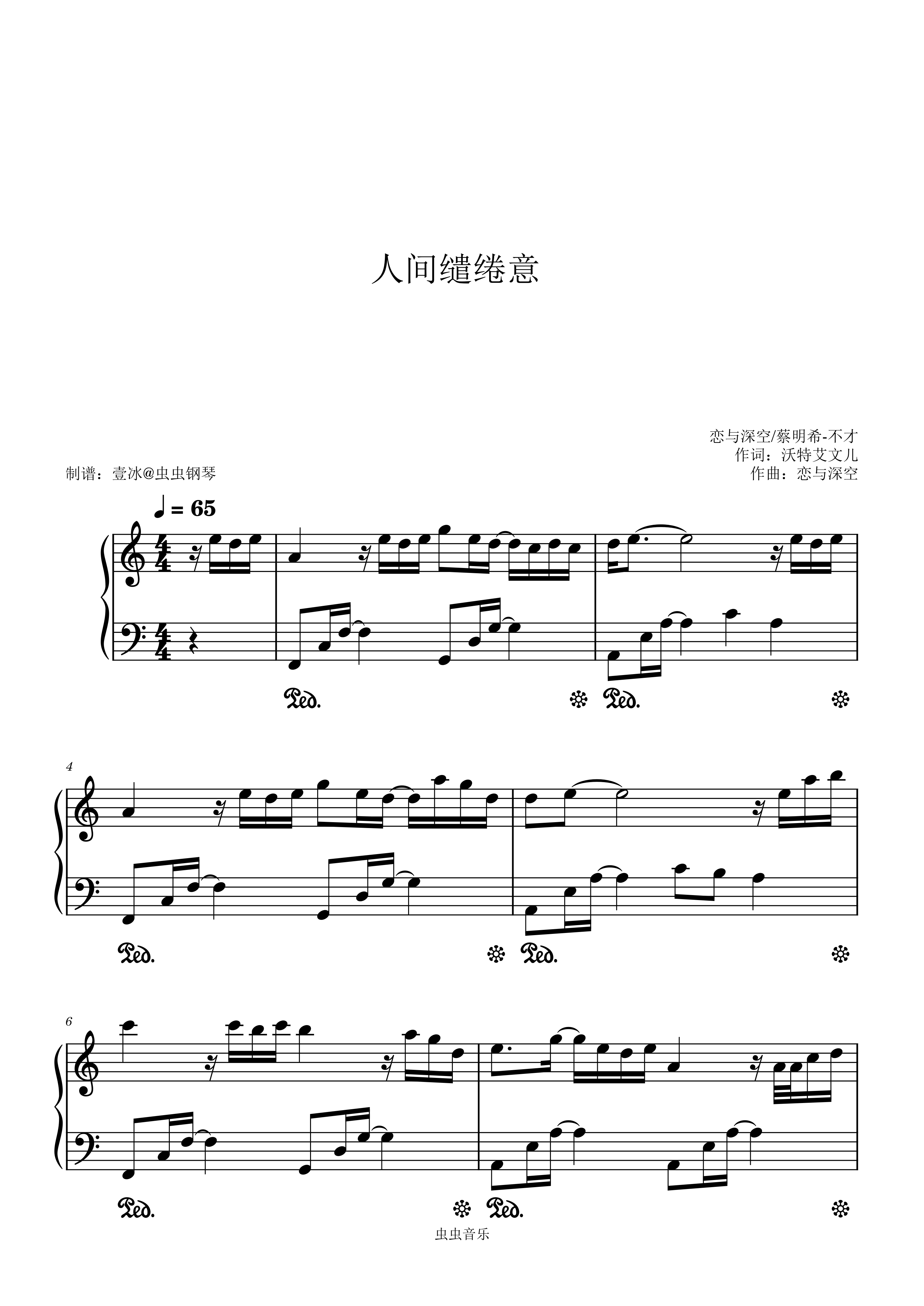 钢琴谱:人间缱绻意 - 恋与深空/蔡明希-不才 C调
