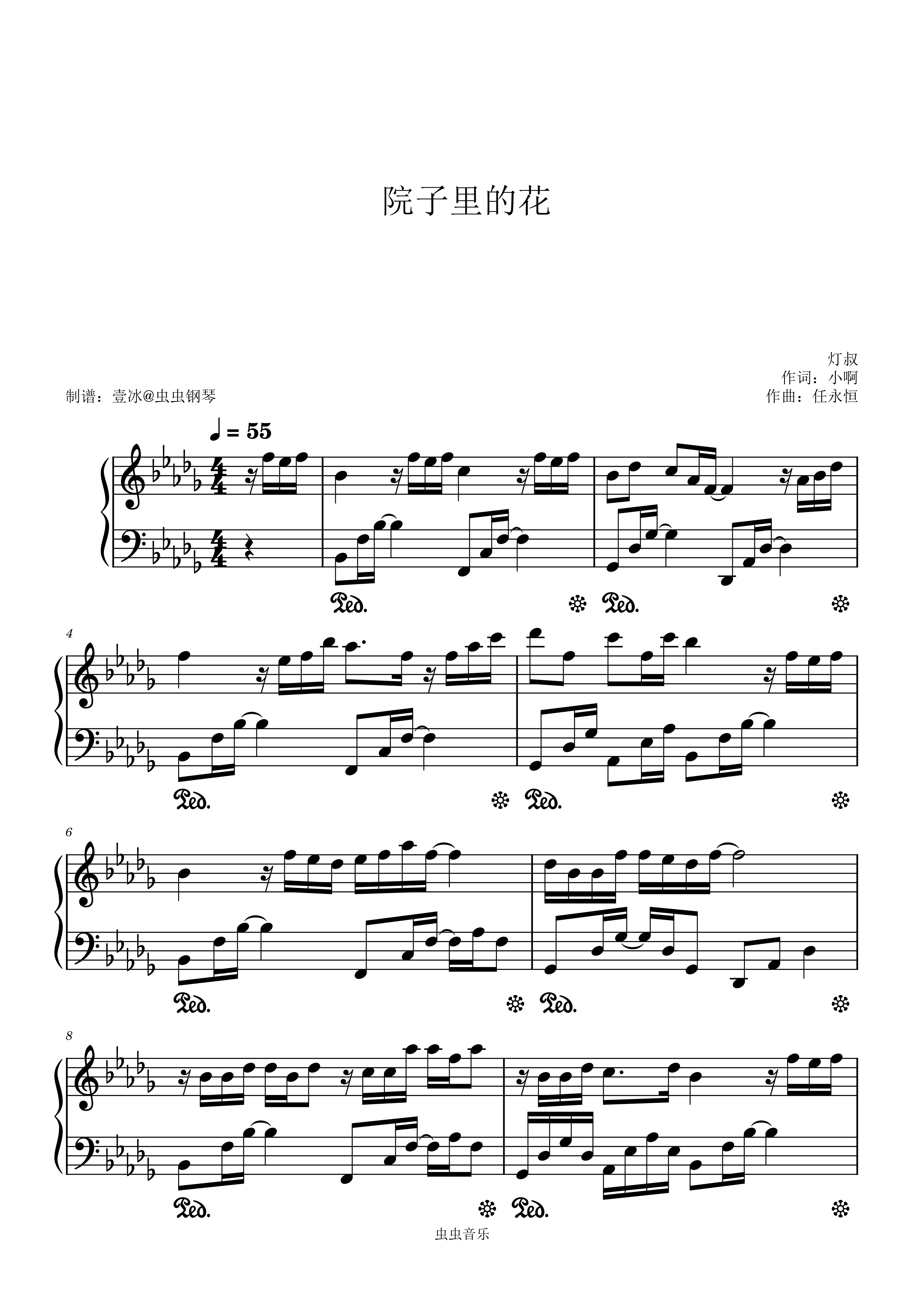 钢琴谱:院子里的花 原调