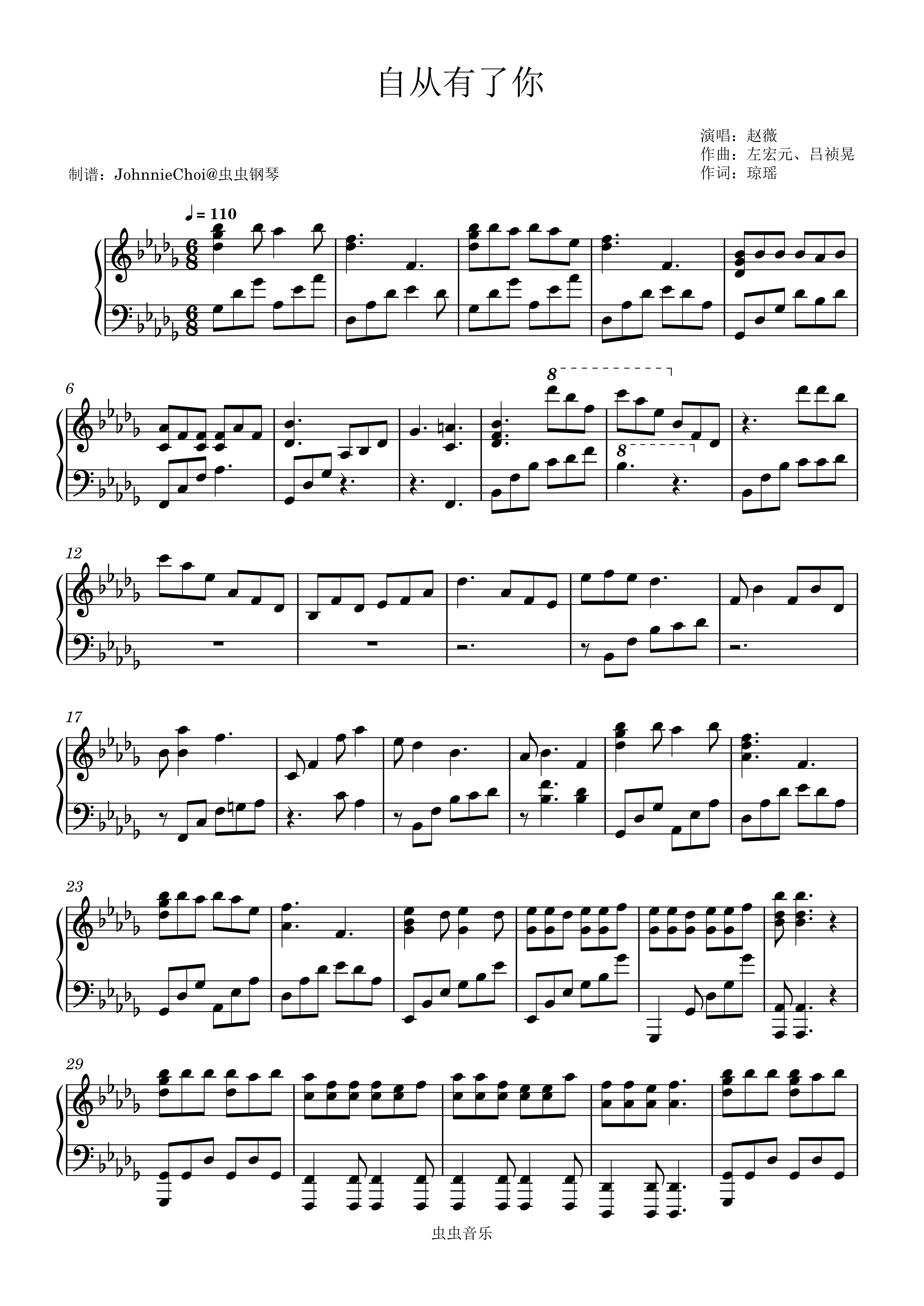 钢琴谱:自从有了你-赵薇-完整版