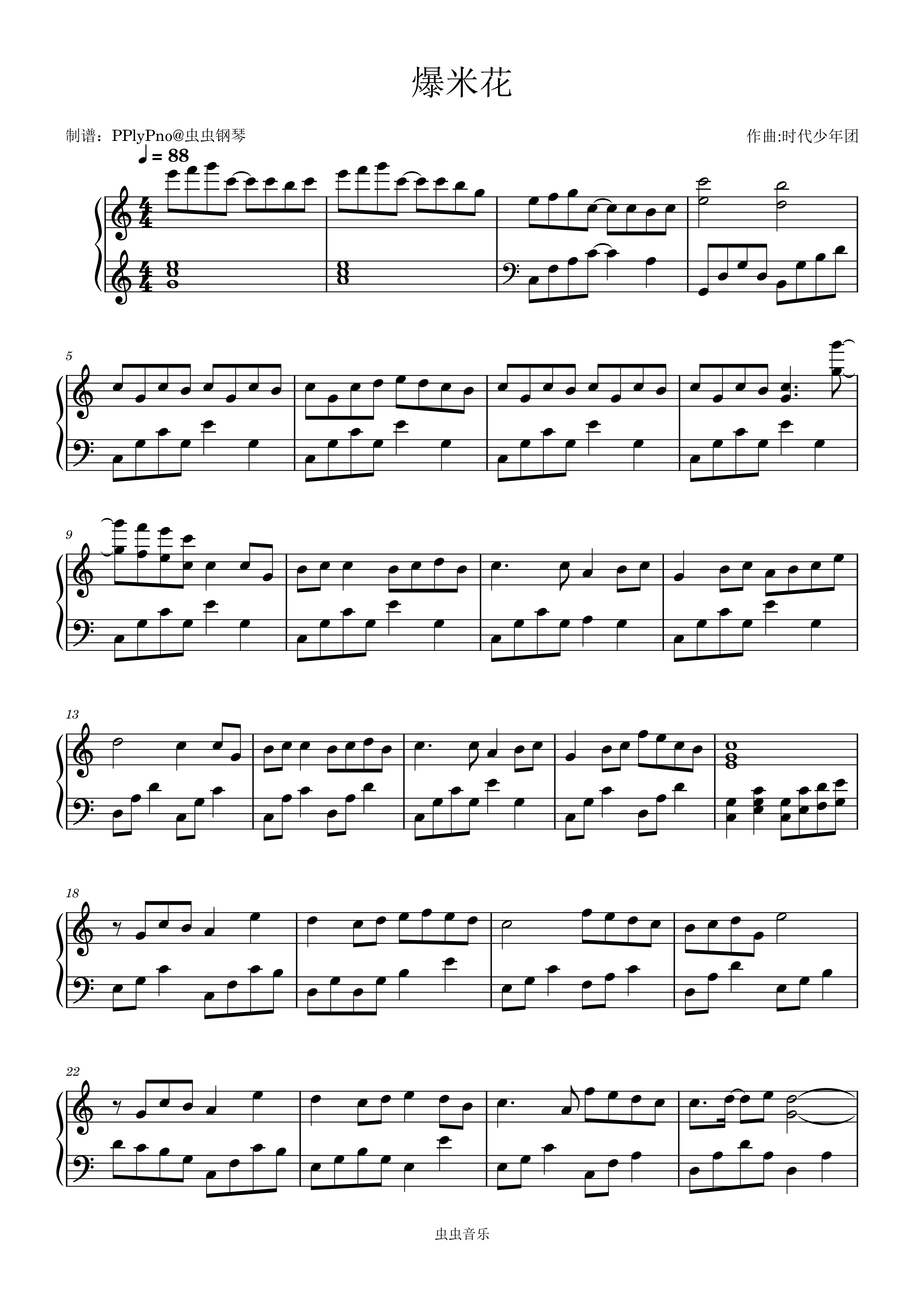 • 爆米花钢琴简谱 C调 数字双手
