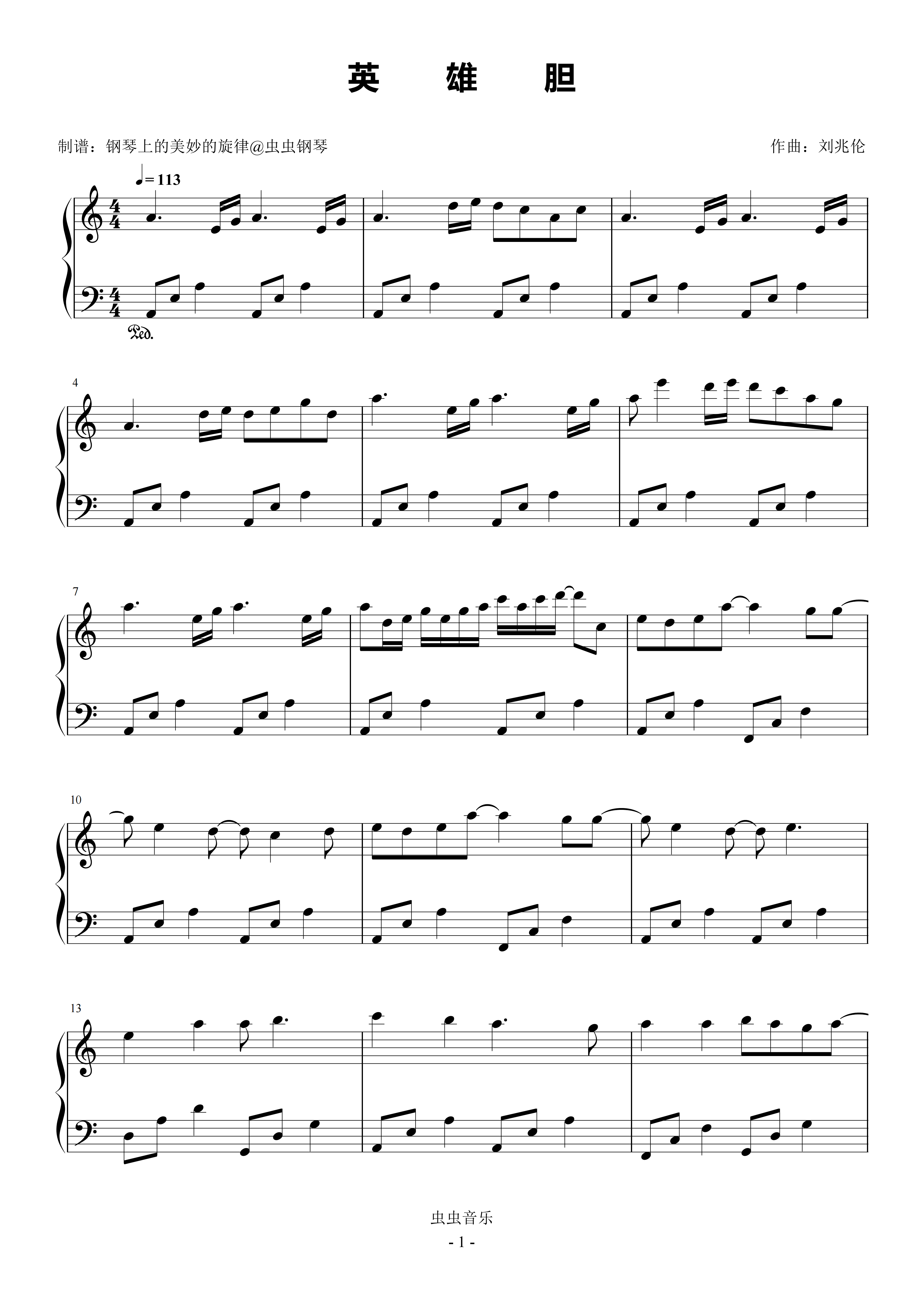 英雄胆钢琴简谱 数字双手