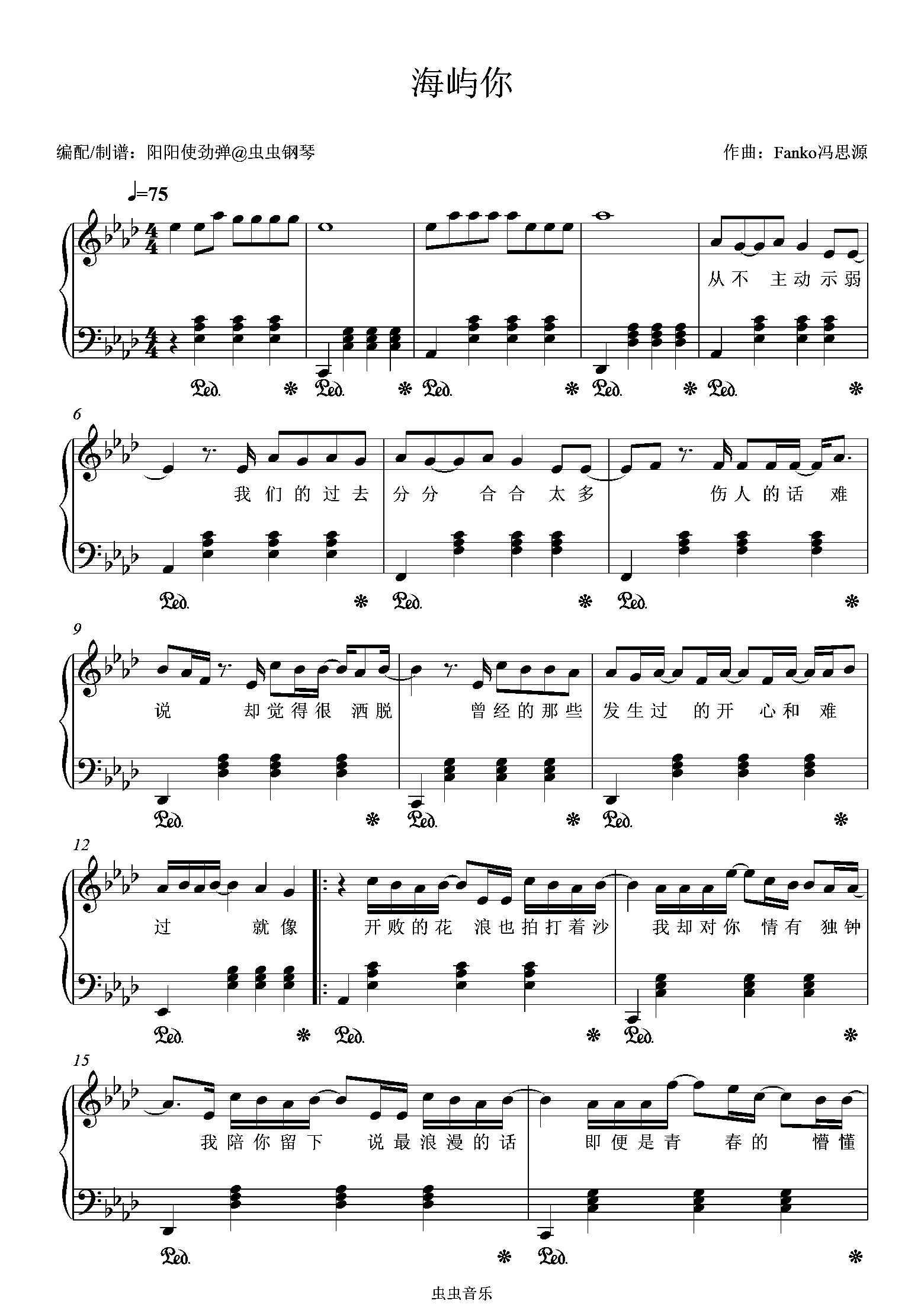 钢琴谱:海屿你(原调附歌词和弦版)