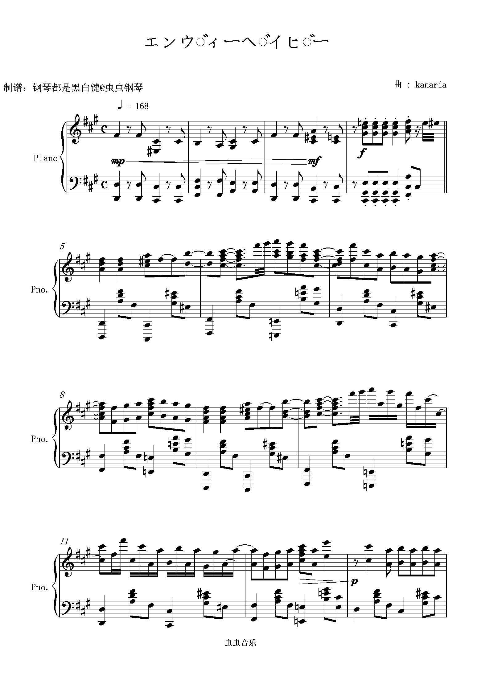 钢琴谱:【GUMI】envy baby/エンヴィーベイビー 【Kanaria】