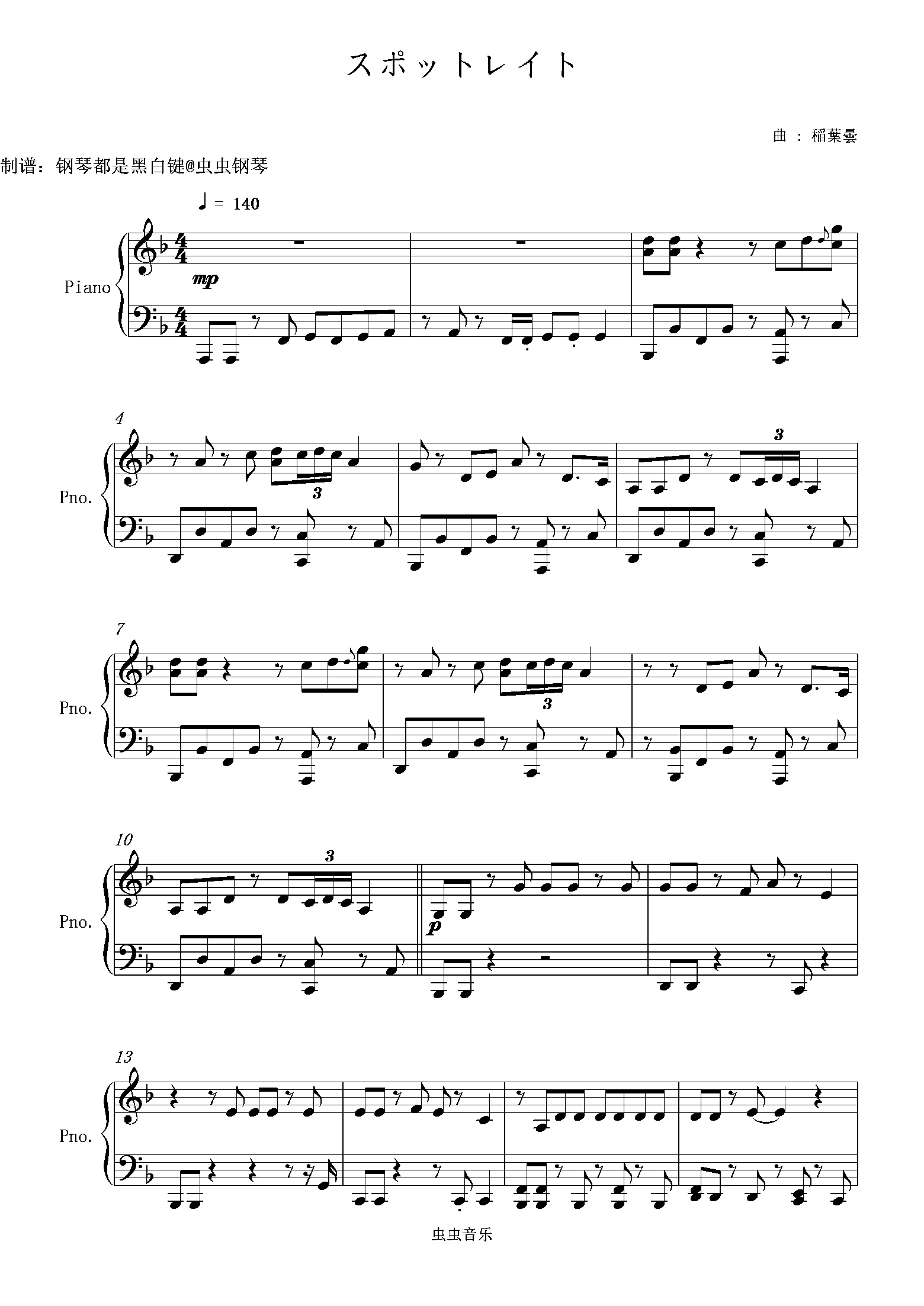 スポットレイト钢琴简谱 数字双手 稲葉曇