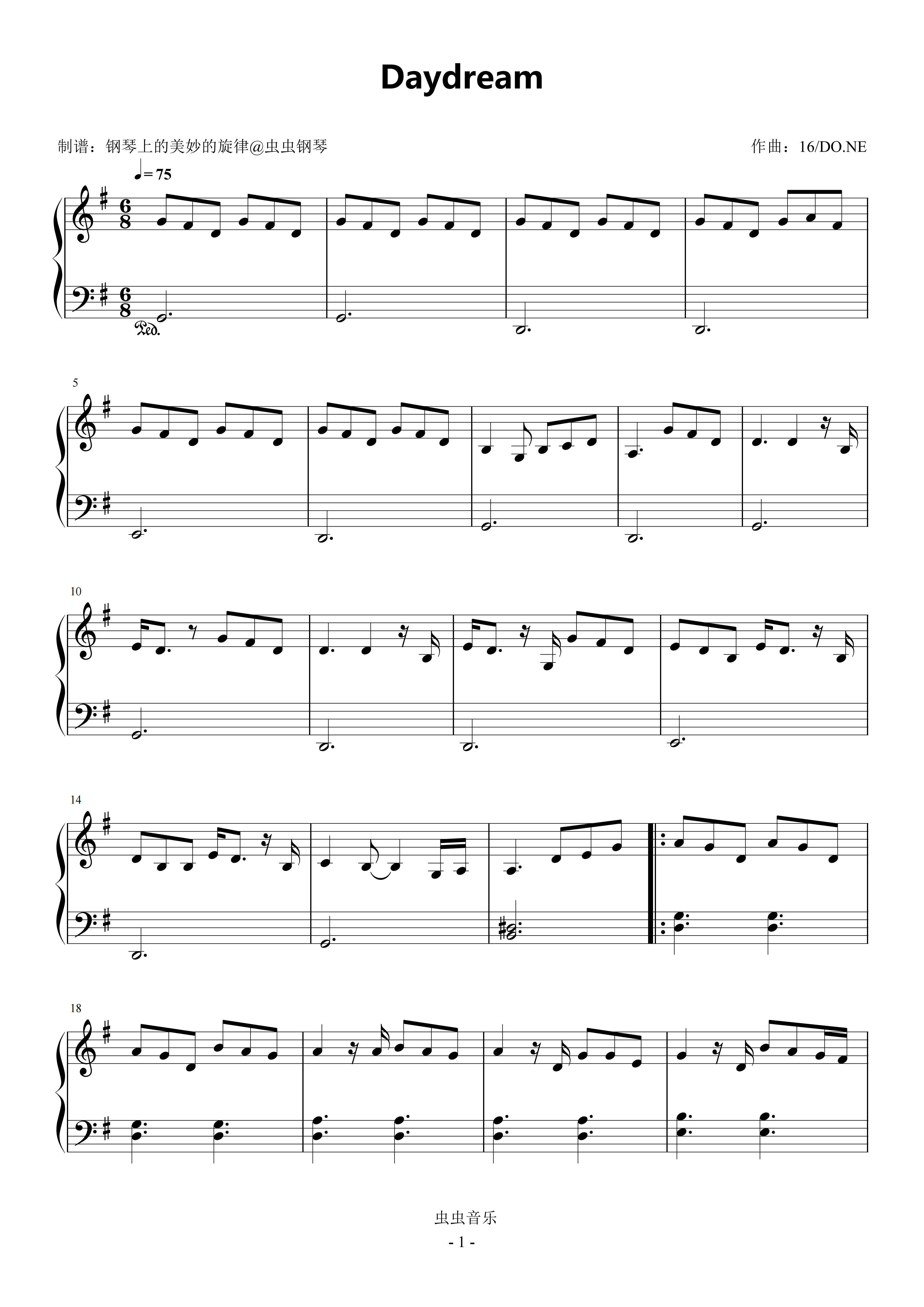 Daydream钢琴简谱 数字双手