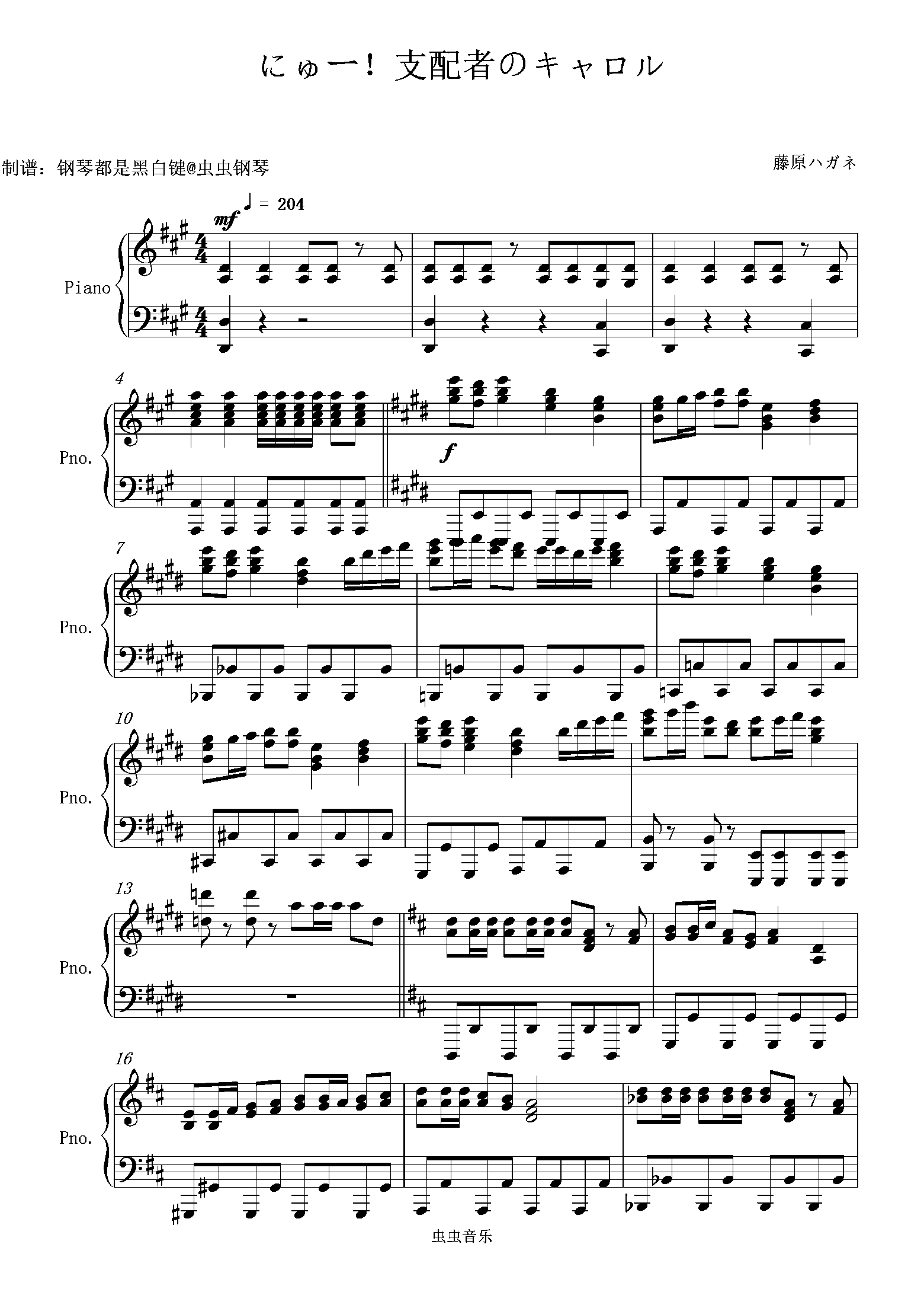 钢琴谱:【里石ユカ‍】喵 ! 支配者的颂歌/にゅー ! 支配者のキャロル