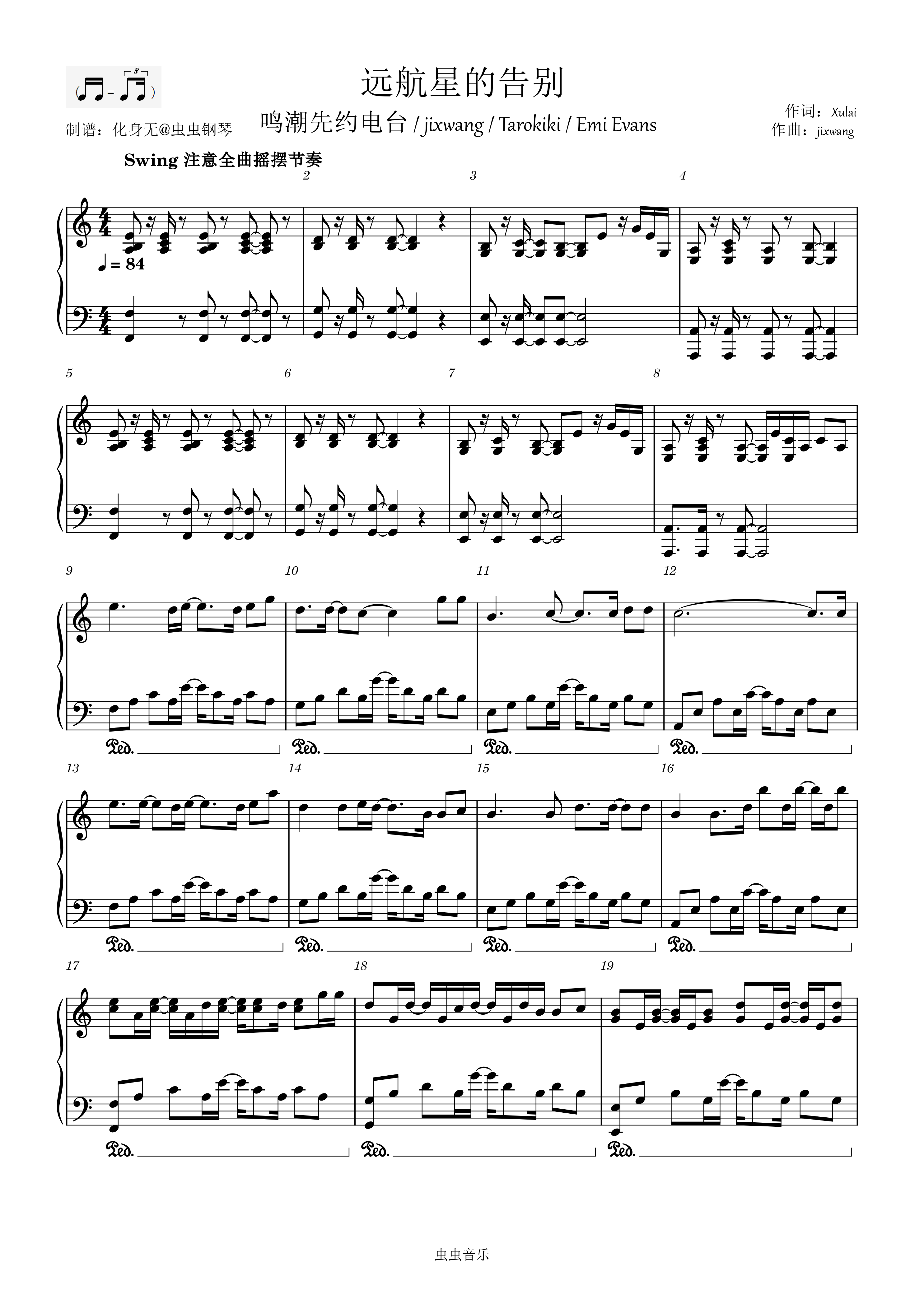 远航星的告别钢琴简谱 数字双手 Xulai