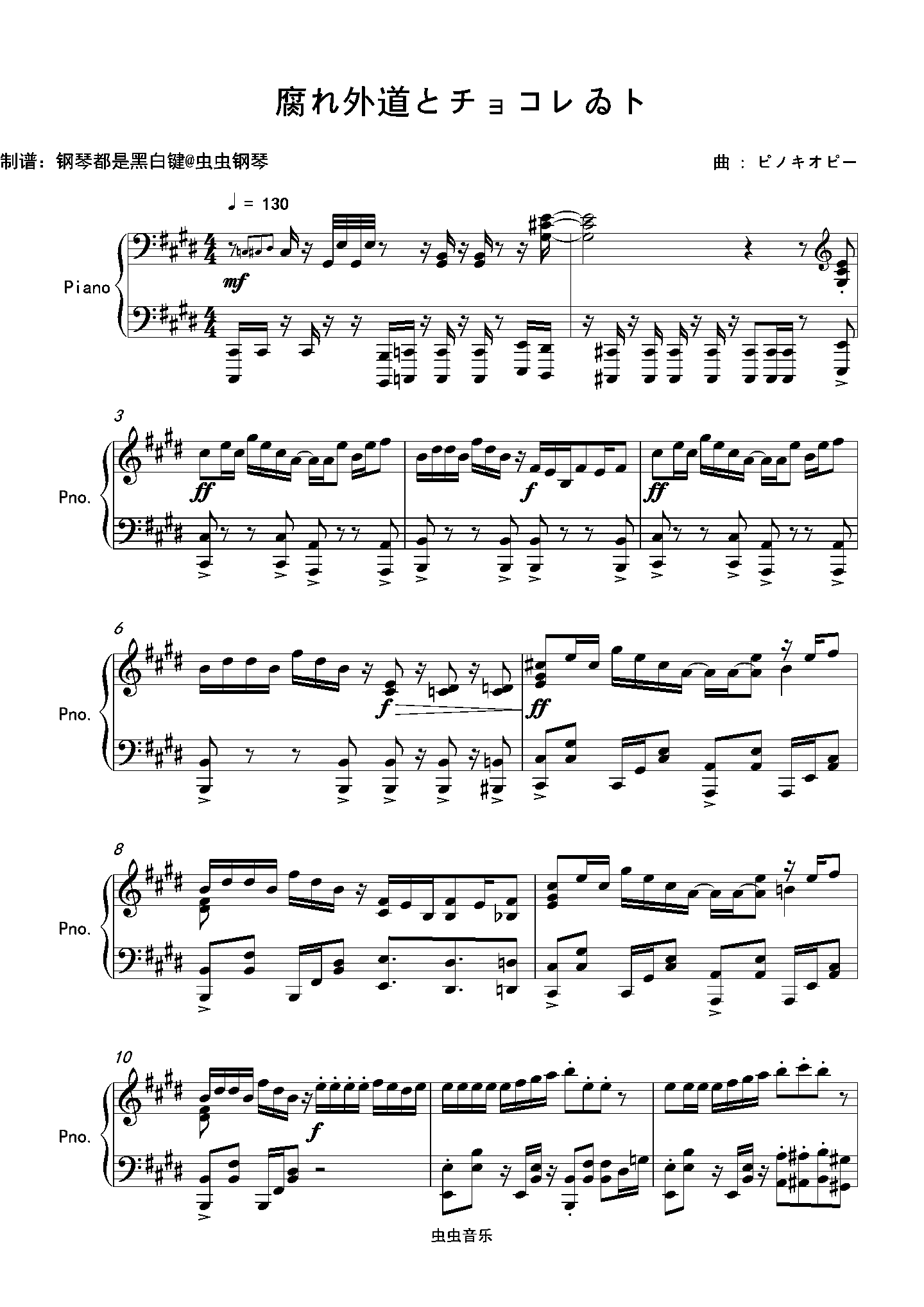 腐れ外道とチョコレゐト钢琴简谱 数字双手 ピノキオピー