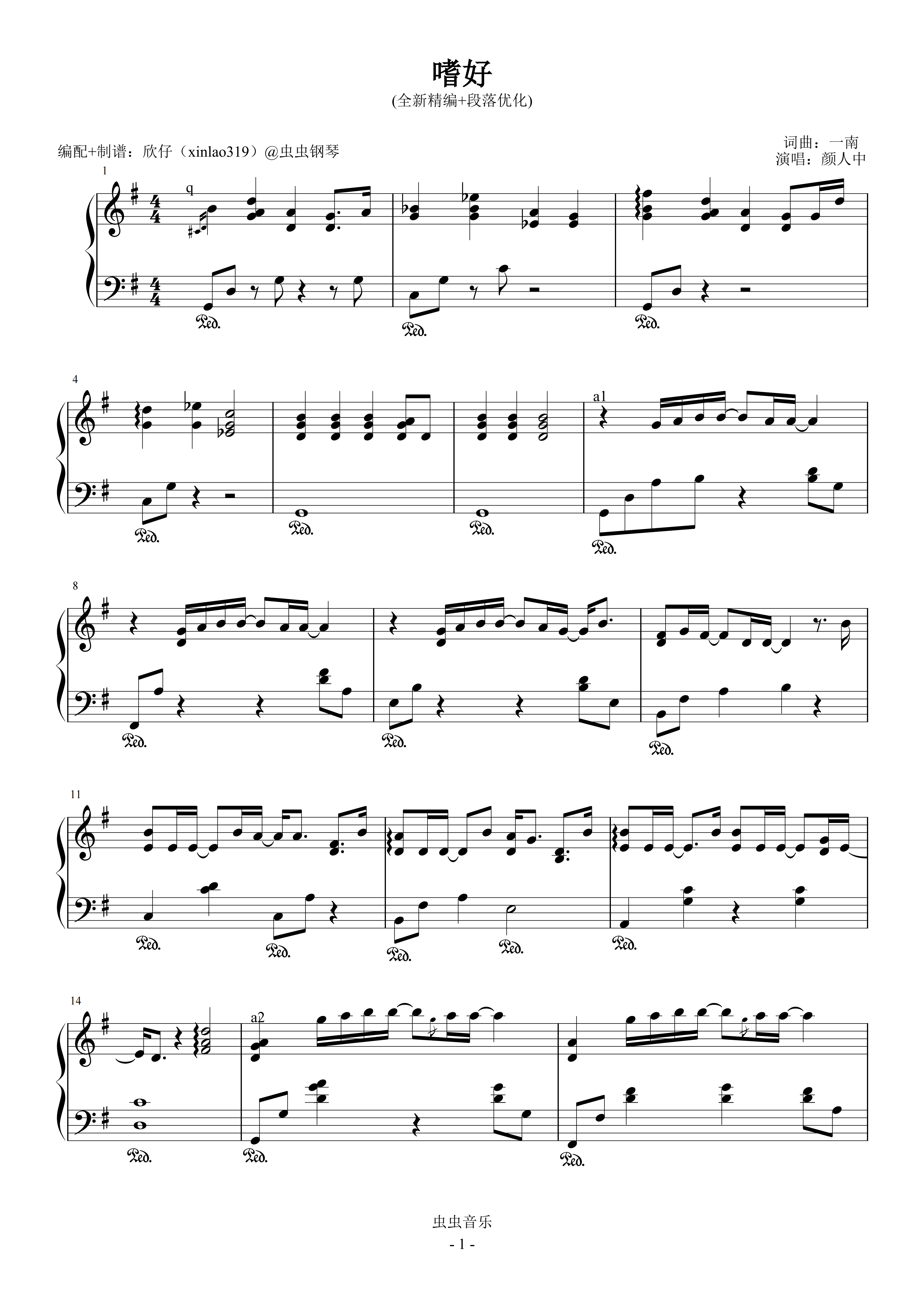 钢琴谱:嗜好(G、颜人中、全新精编+段落优化)