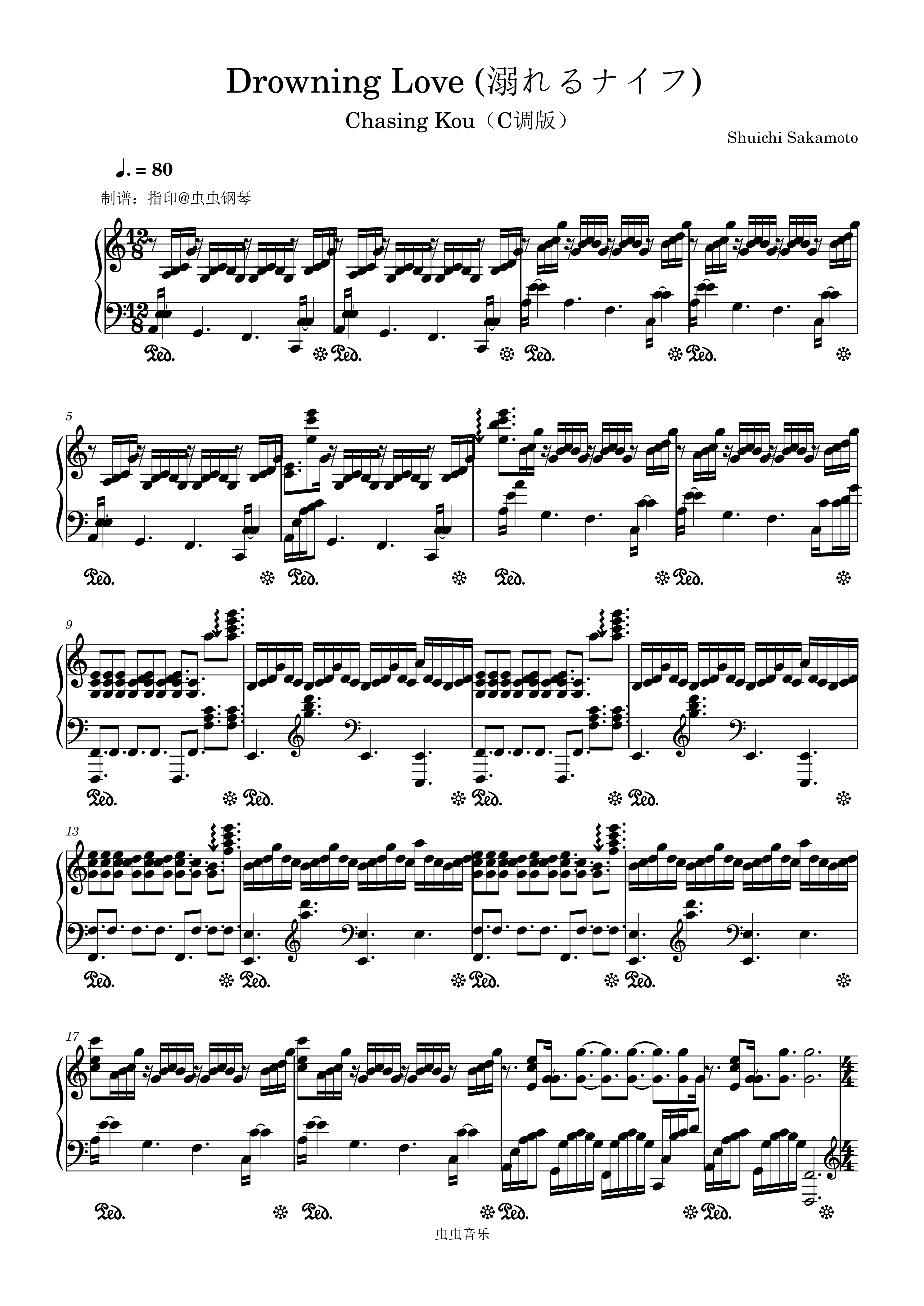 钢琴谱:C调版《Drowning Love (溺れるナイフ)》