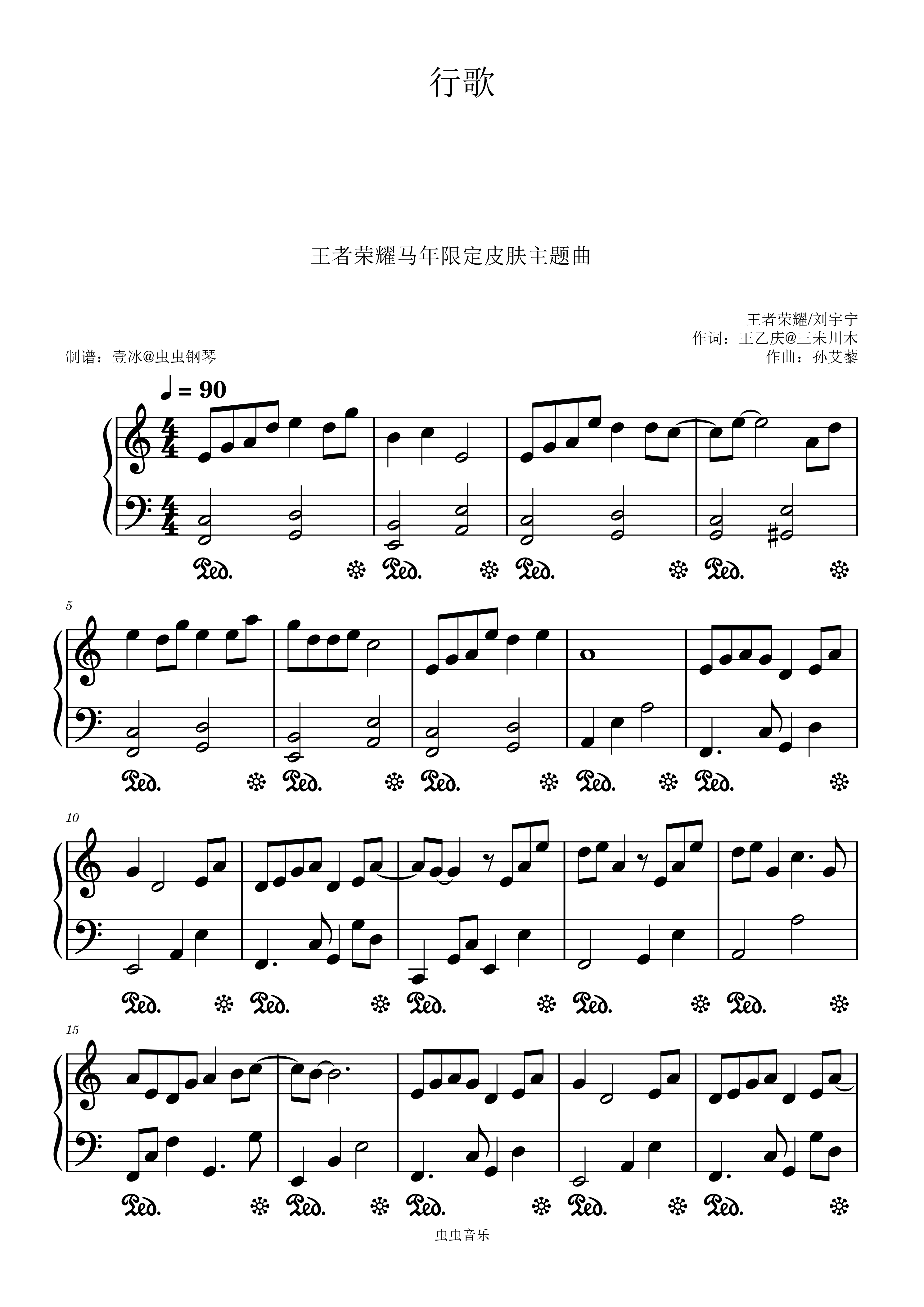 钢琴谱:行歌 (王者荣耀马年限定皮肤主题曲) - 王者荣耀/刘宇宁