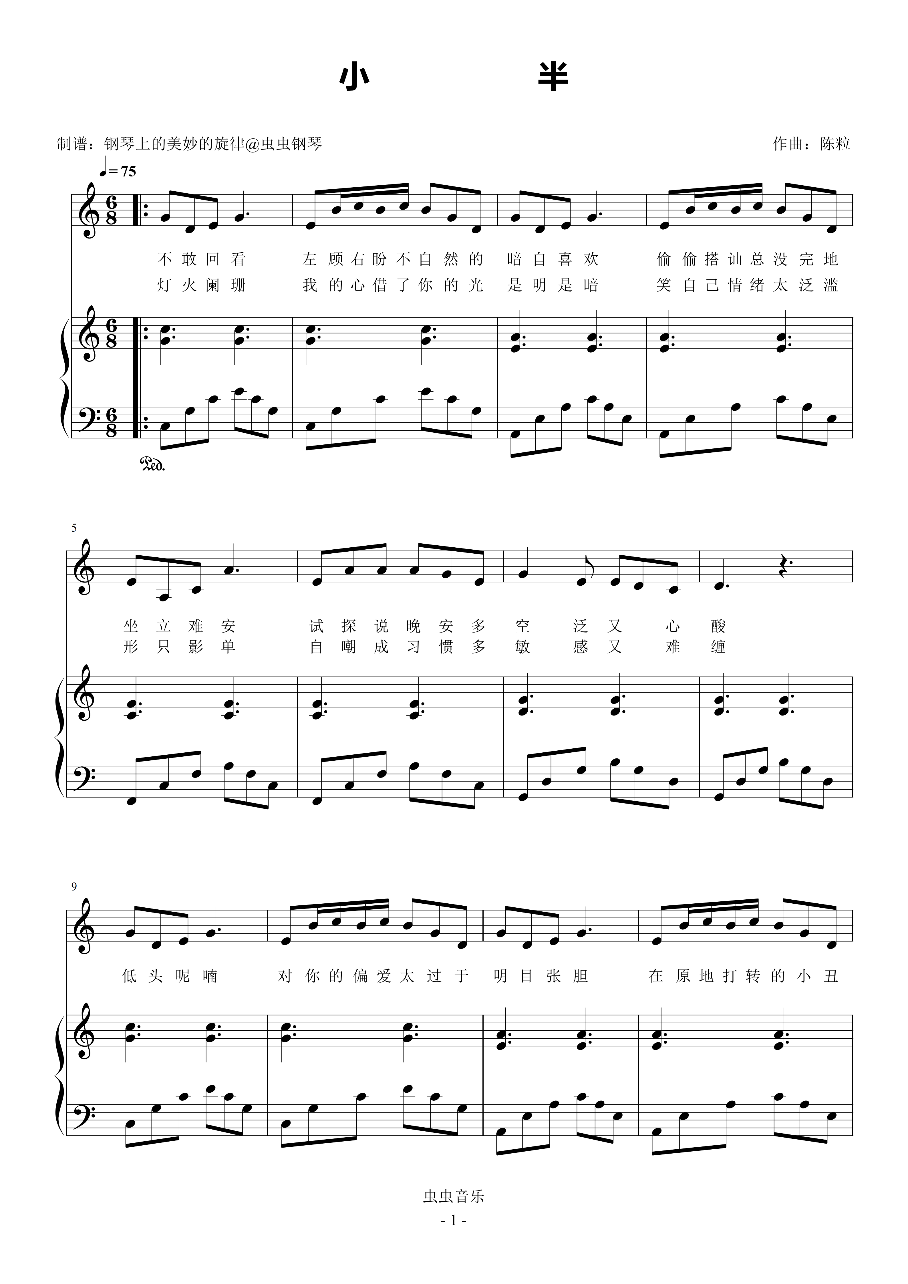 • 小半钢琴简谱 G调 数字双手 陈粒