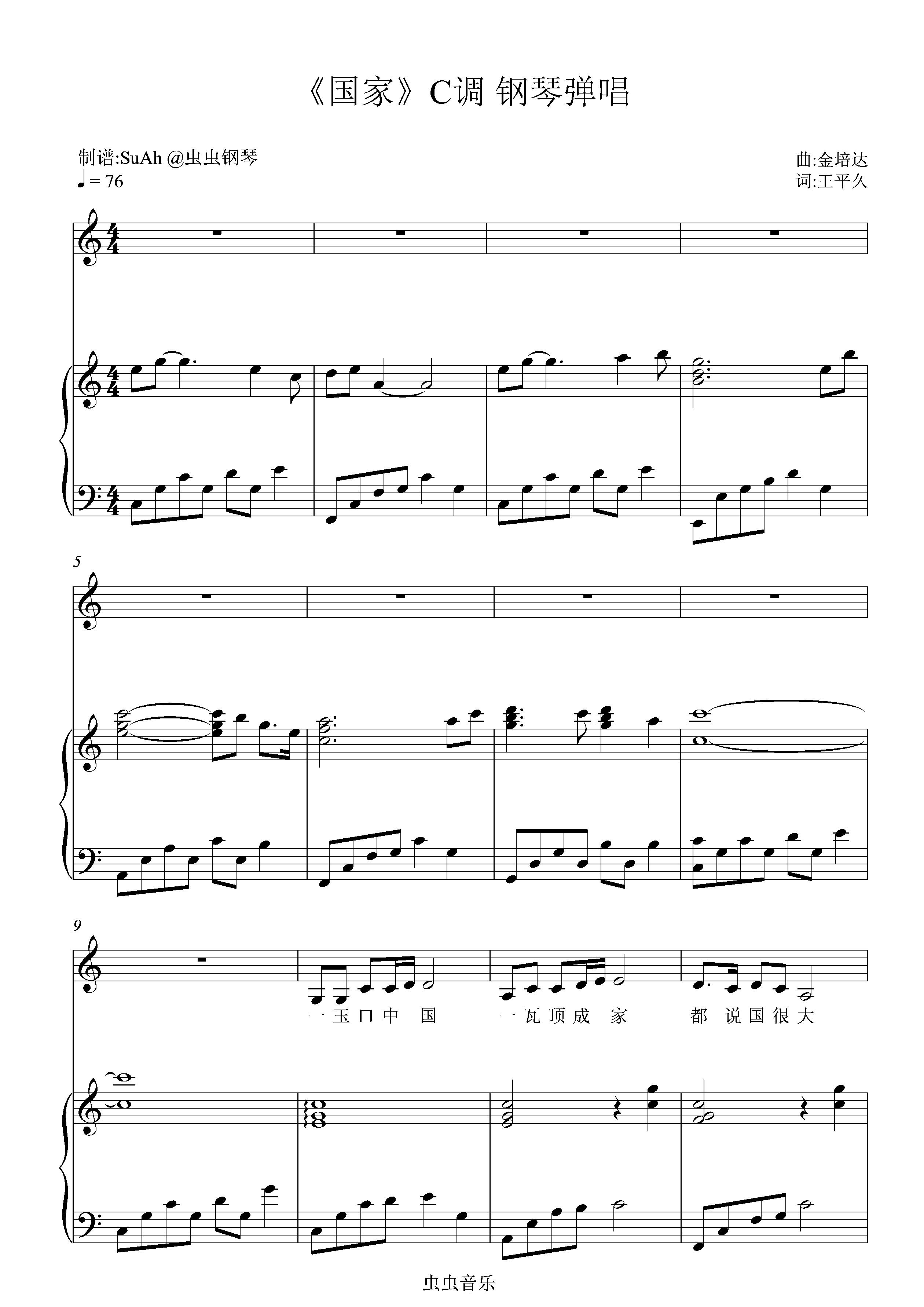 钢琴谱:成龙 刘媛媛 国家-C调弹唱