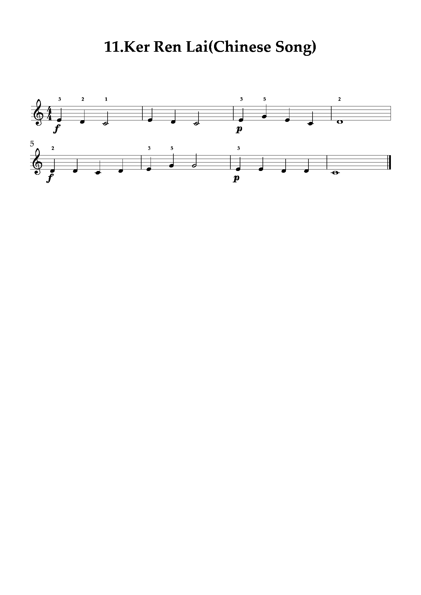 钢琴谱:11.Ker Ren Lai(Chinese Song)