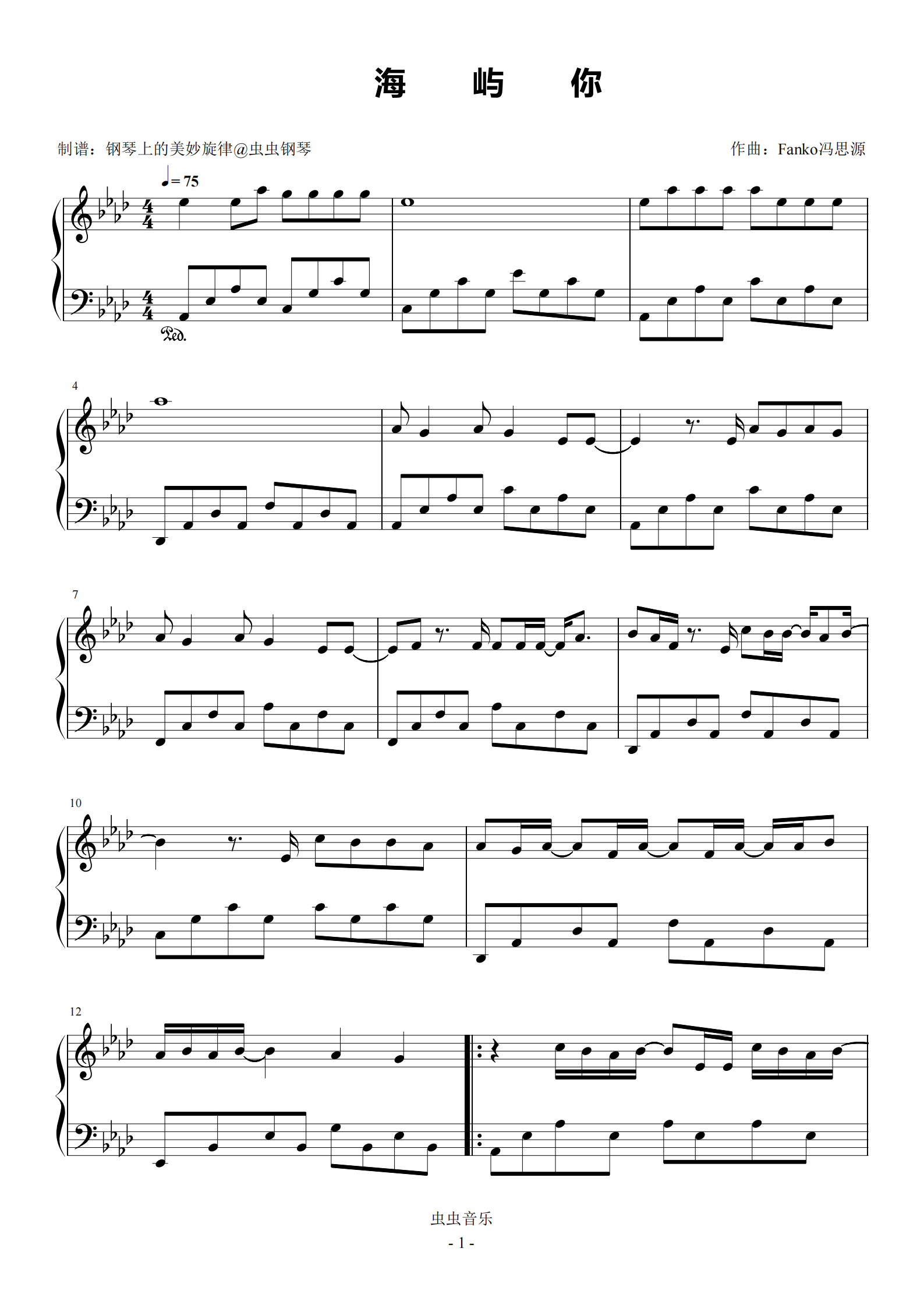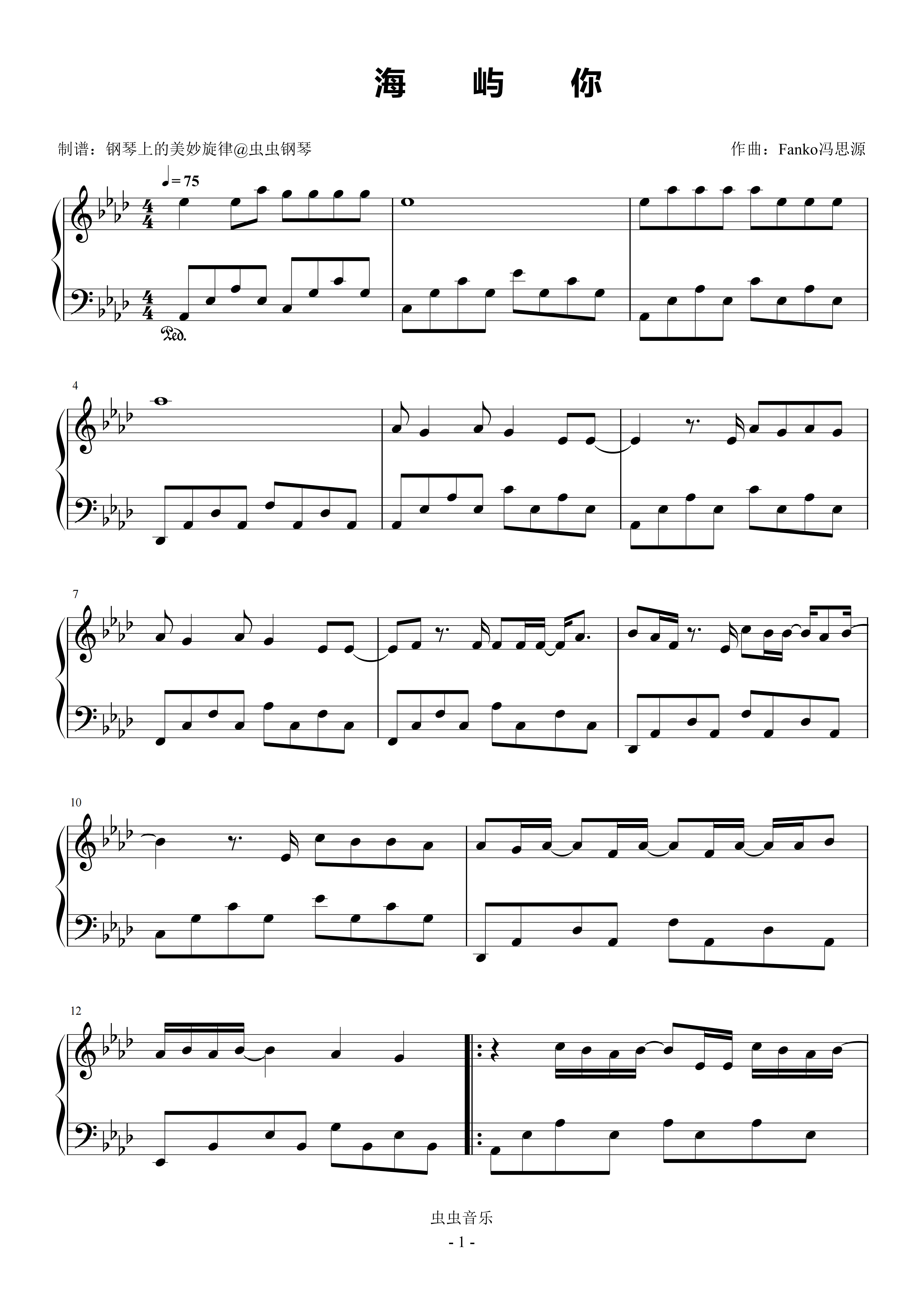 钢琴谱:海屿你 简易版 马也_Crabbit