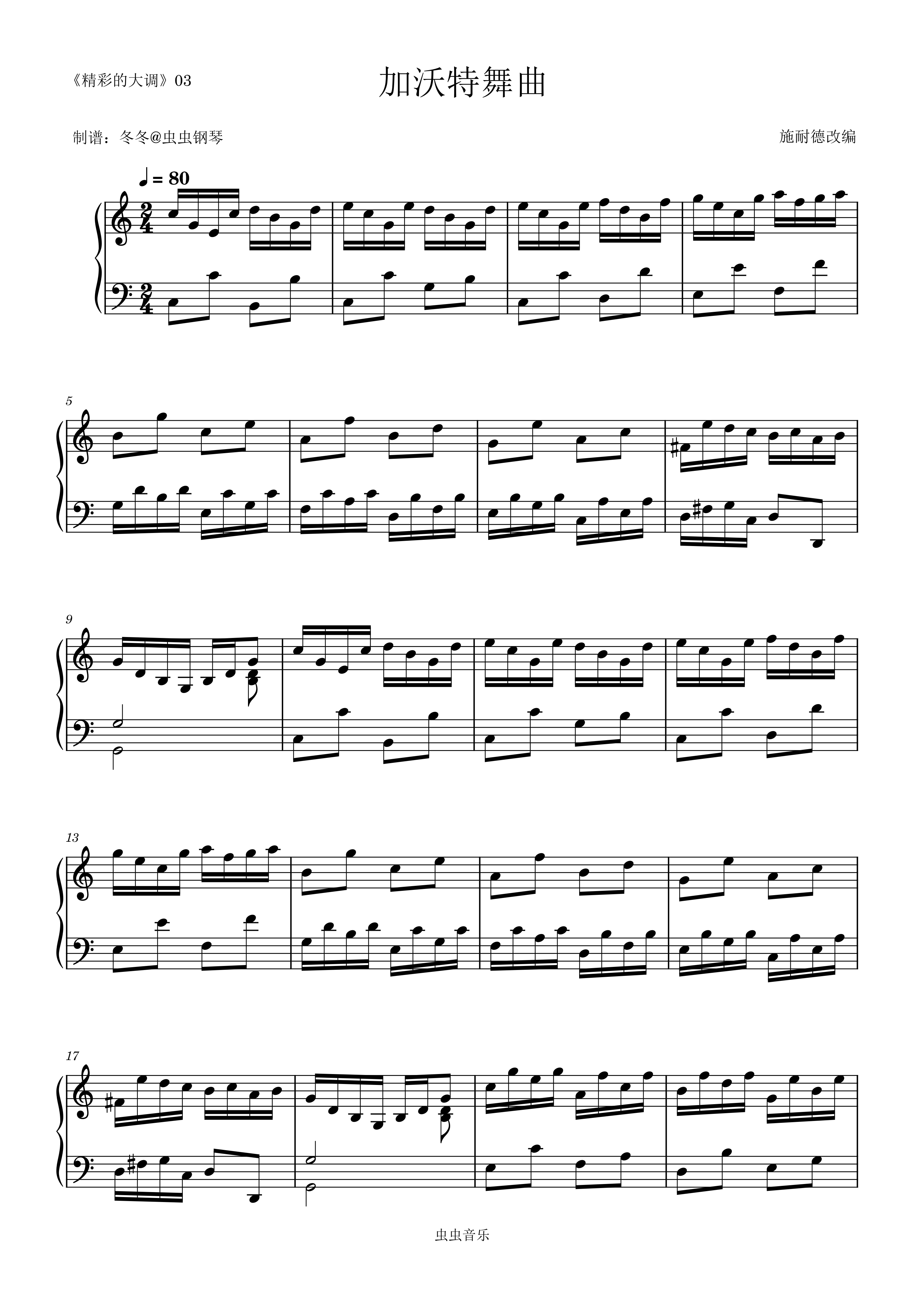 • 六级02加沃特舞曲钢琴简谱 C调 数字双手