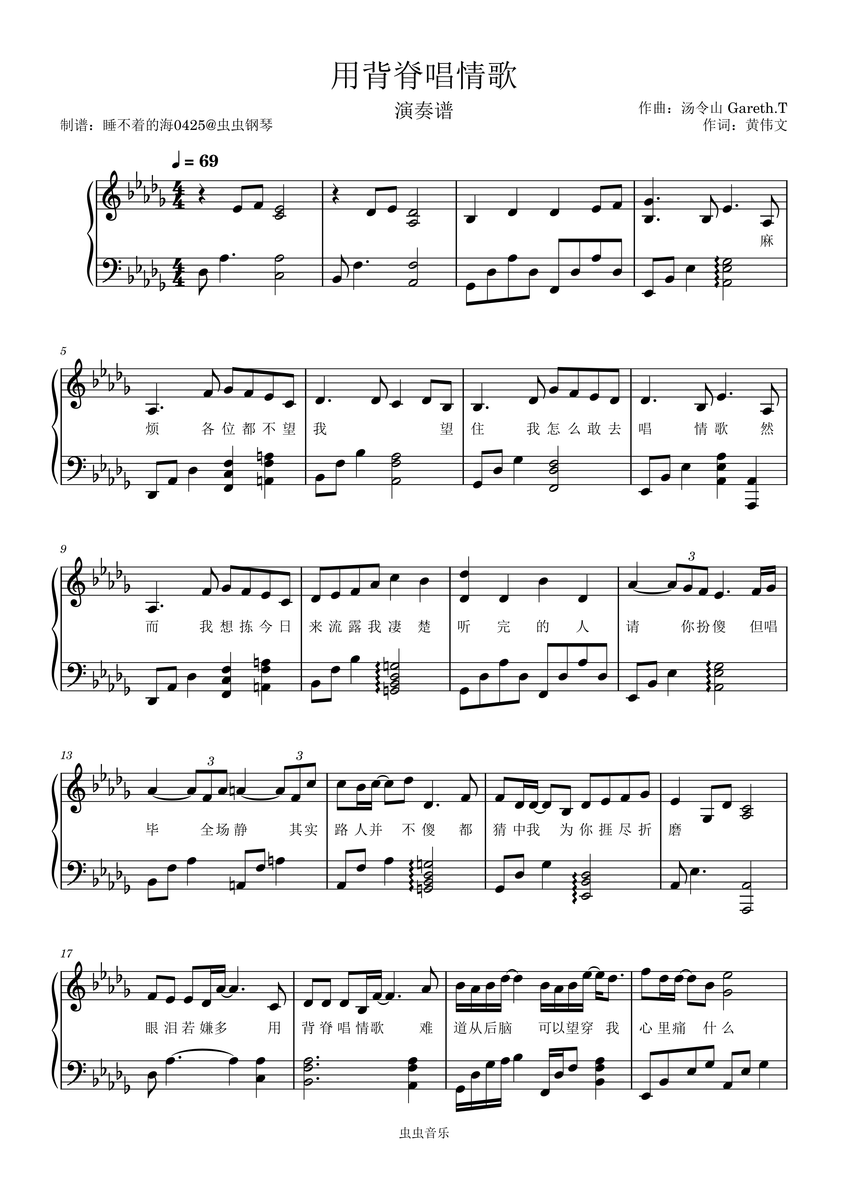 钢琴谱:用背脊唱情歌