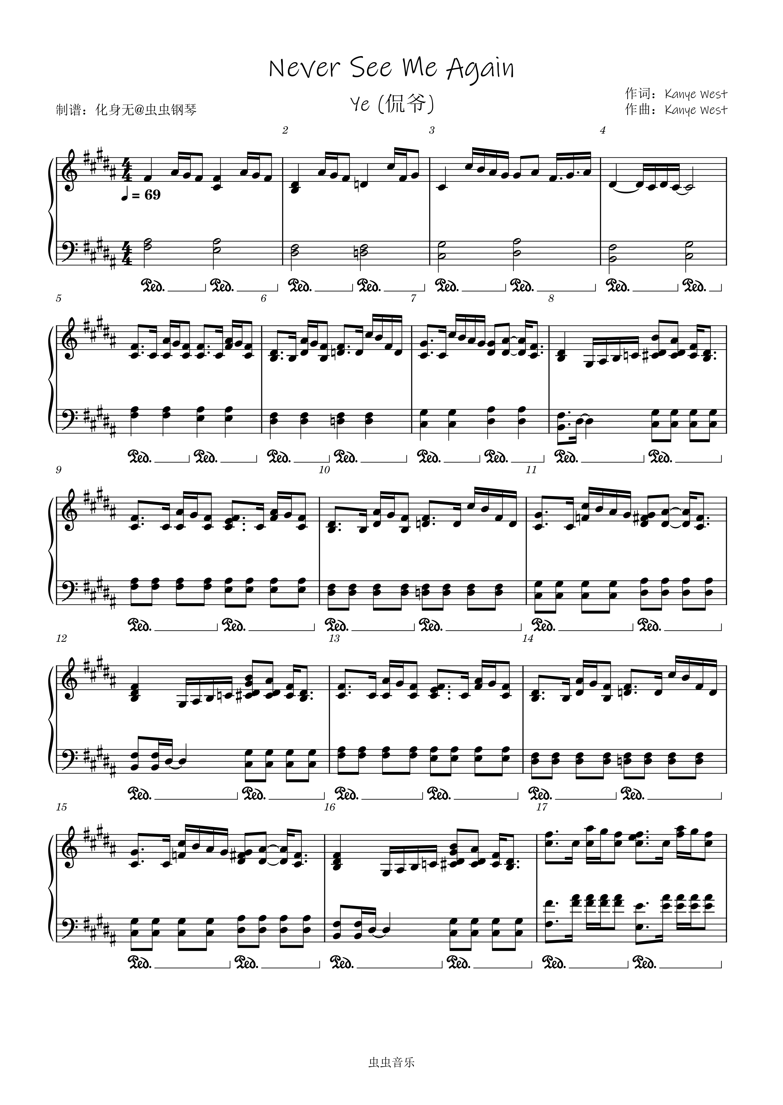 Never See Me Again钢琴简谱 数字双手 Kanye West