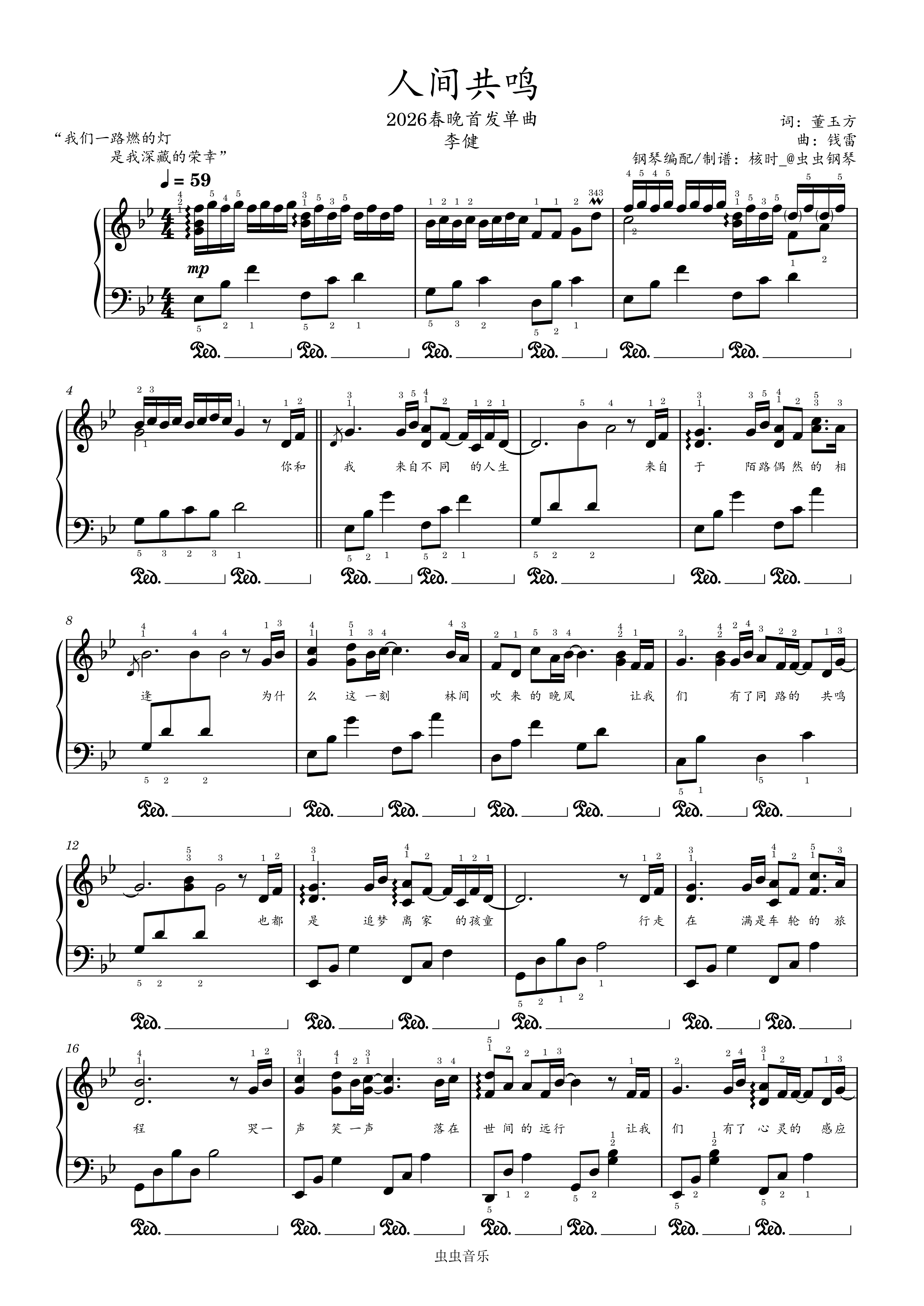 钢琴谱:人间共鸣(2026央视春晚,完美演奏版附歌词)- 李健【核时完整精编】