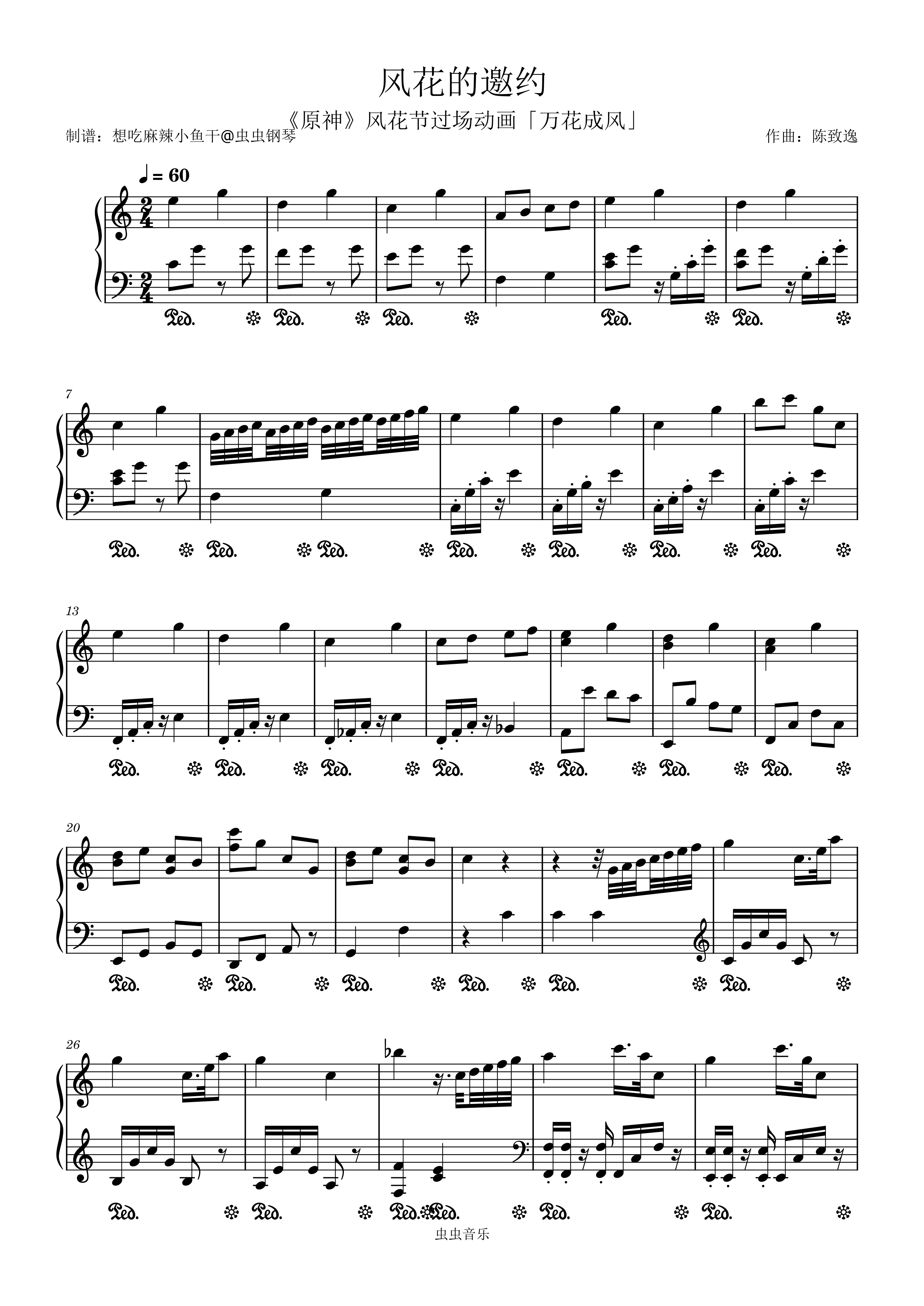 钢琴谱:风花的邀约(《原神》风花节过场动画《万花成风》)