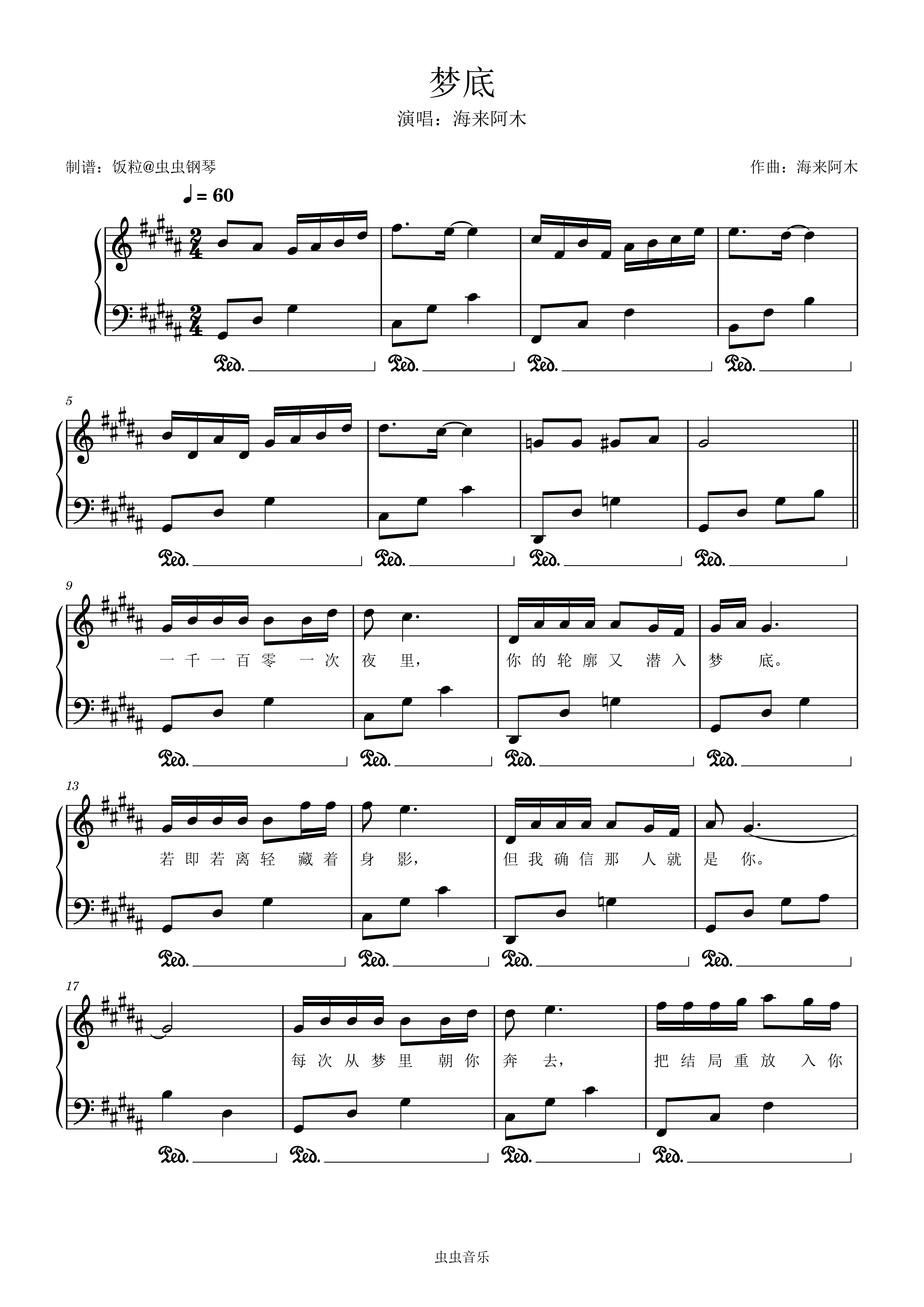 钢琴谱:梦底(2026年央视春晚歌曲,原调附歌词)