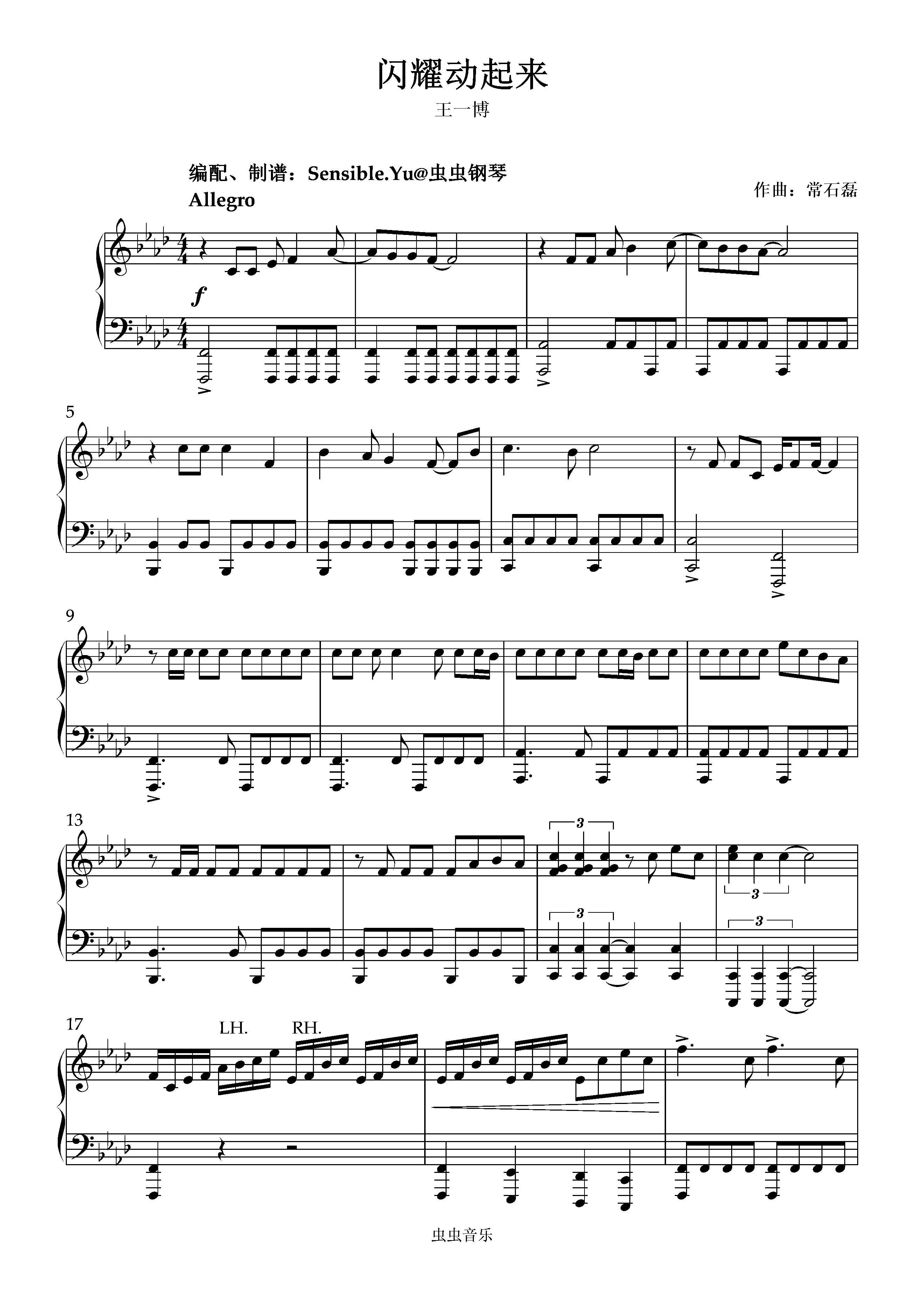 钢琴谱:《闪耀动起来》王一博(原调)(改编:Sensible.Yu)