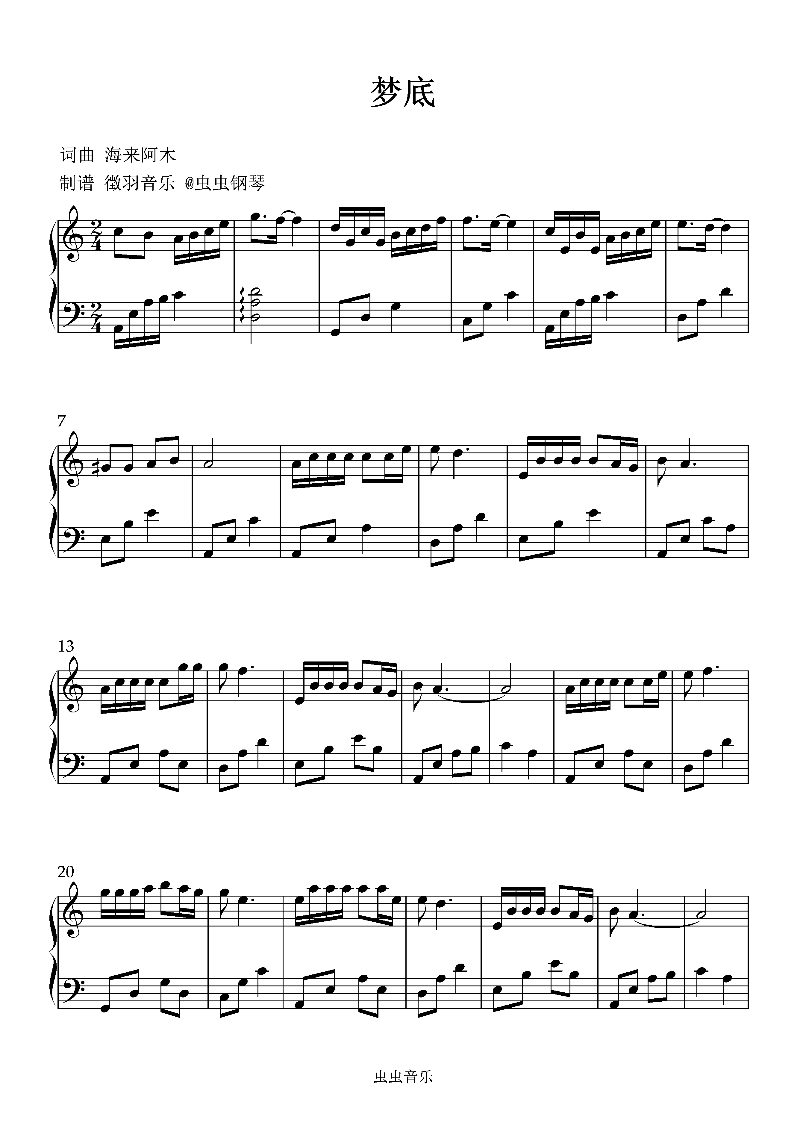 钢琴谱:《梦底》 C调 2026年春晚歌曲