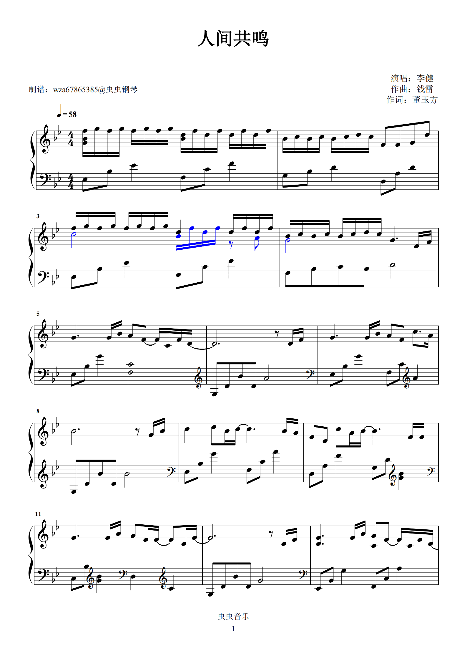 • 人间星河钢琴简谱 C调 数字双手 安九