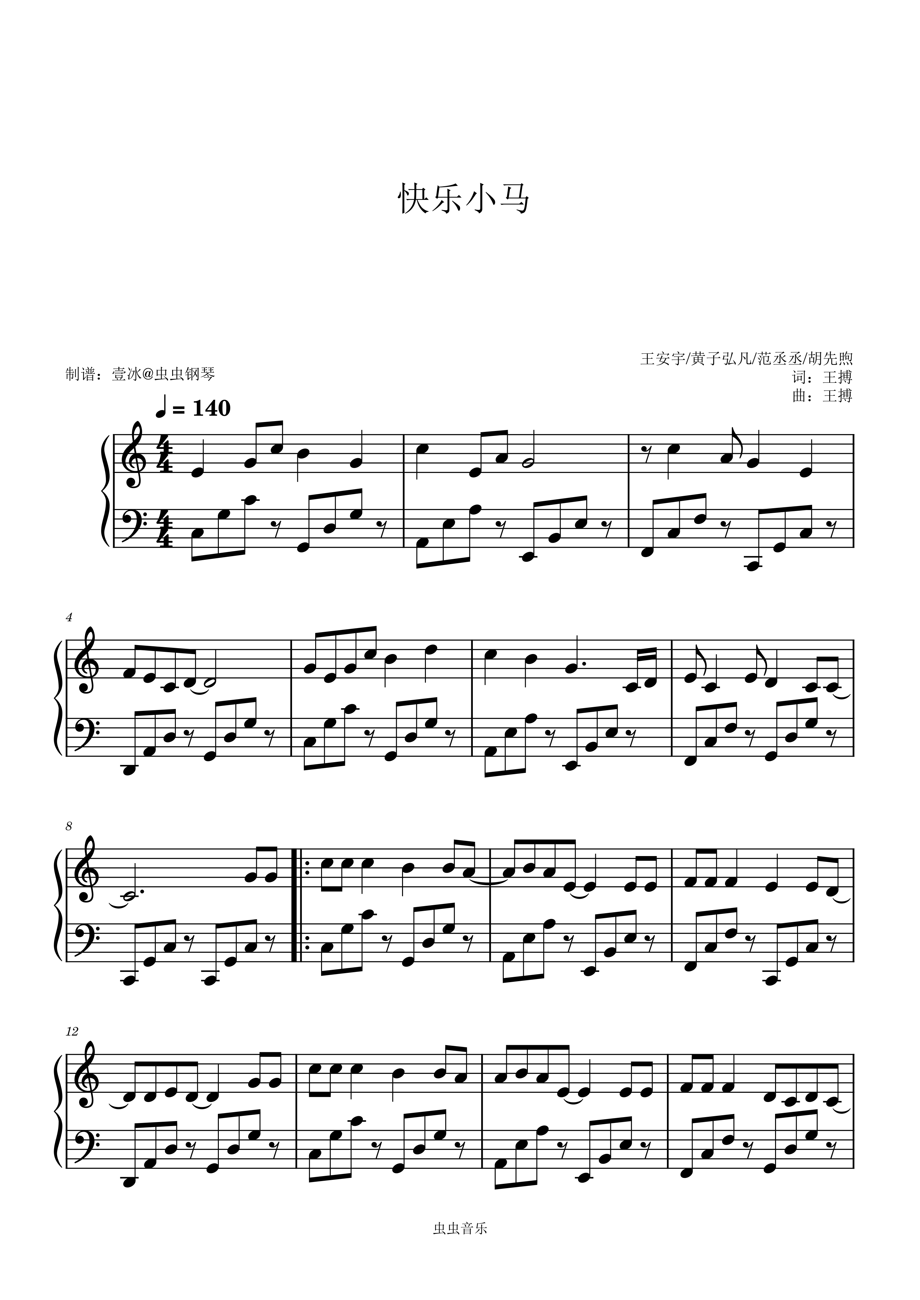 钢琴谱:快乐小马 - 26春晚 王安宇/黄子弘凡/范丞丞/胡先煦 C调
