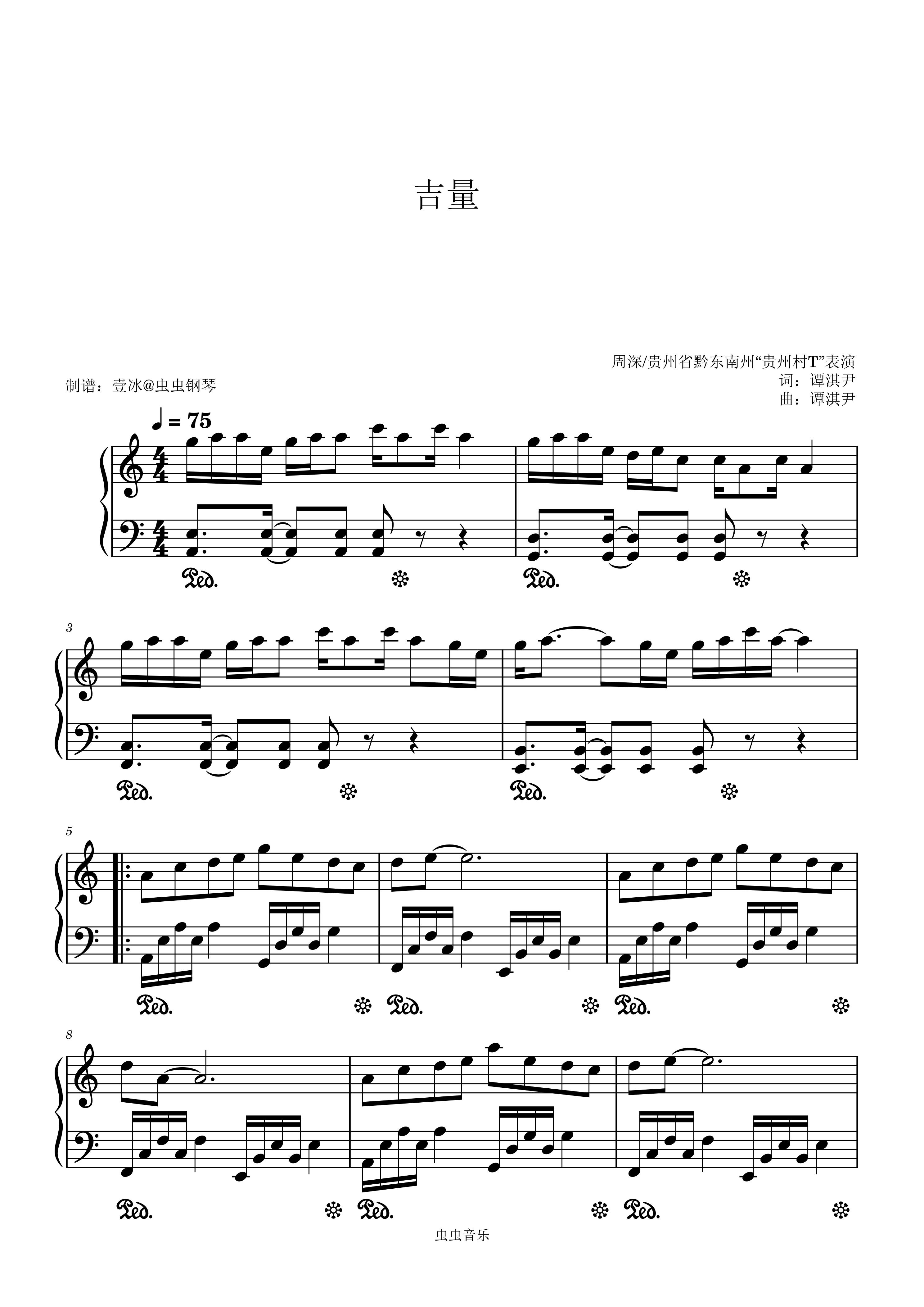 钢琴谱:吉量- 26春晚//周深/贵州省黔东南州“贵州村T”表演 C调