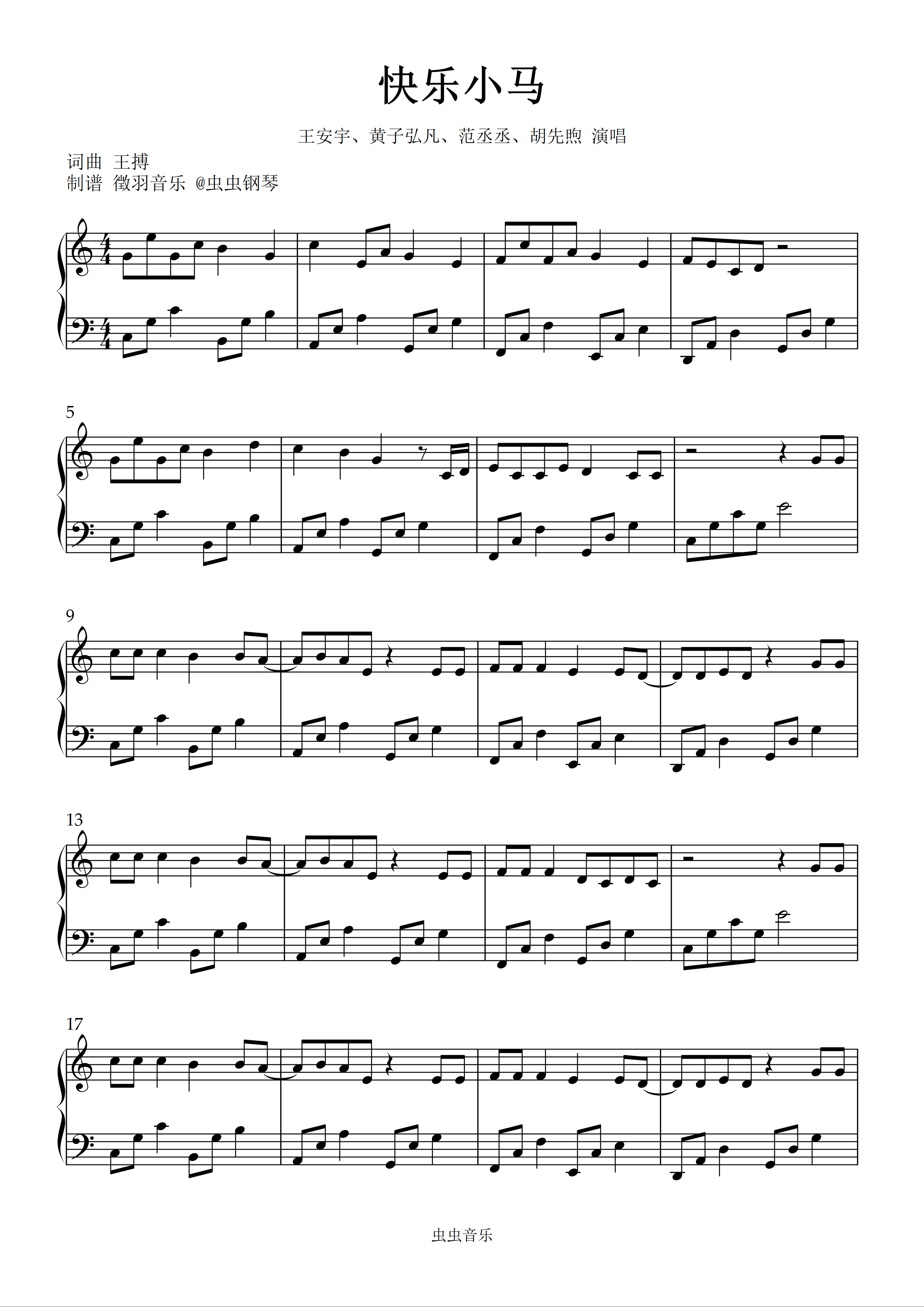 钢琴谱:快乐小马 2016年春晚歌曲