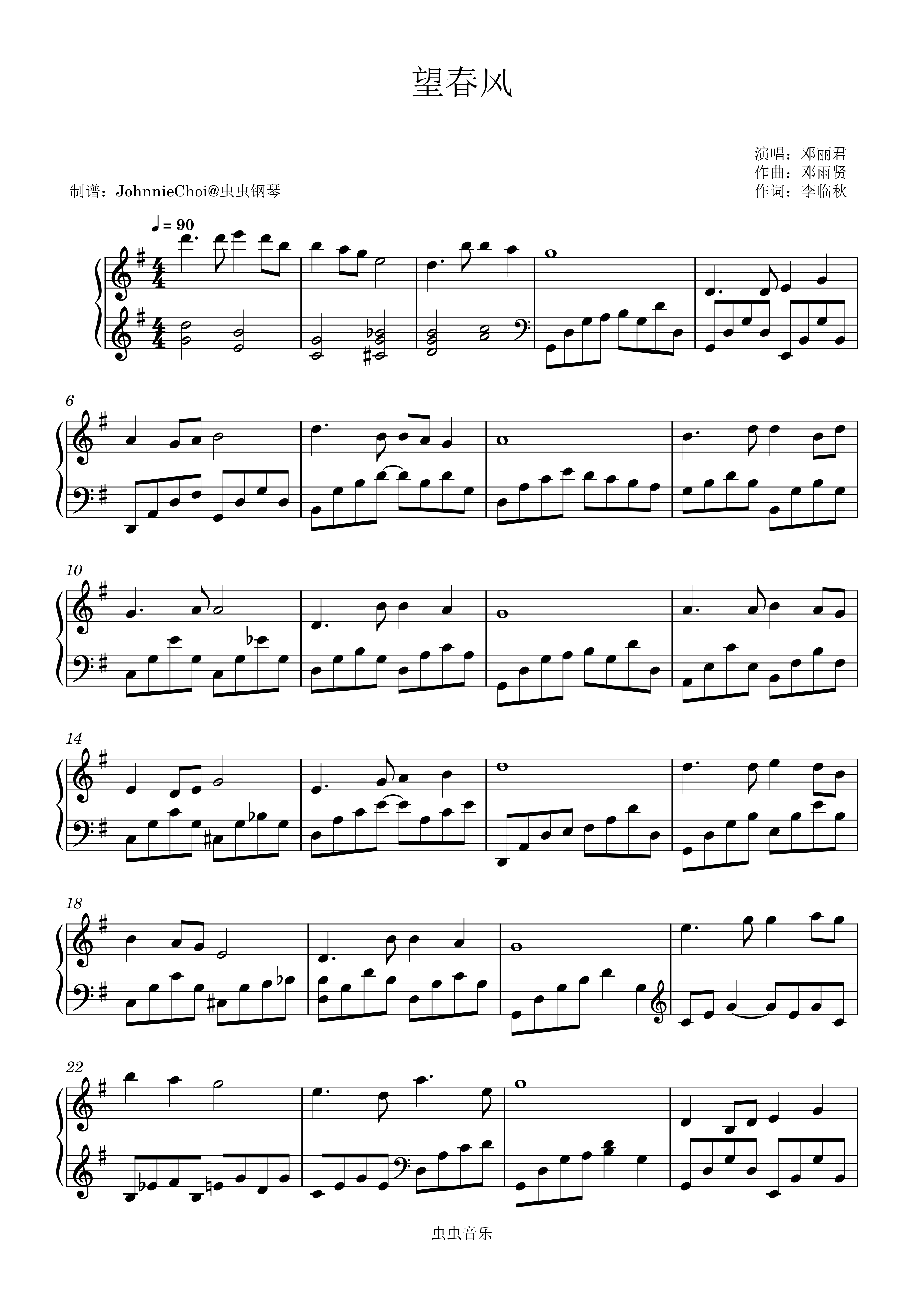 • 春风无依钢琴简谱 G调 数字双手 李俊宜/浅紫