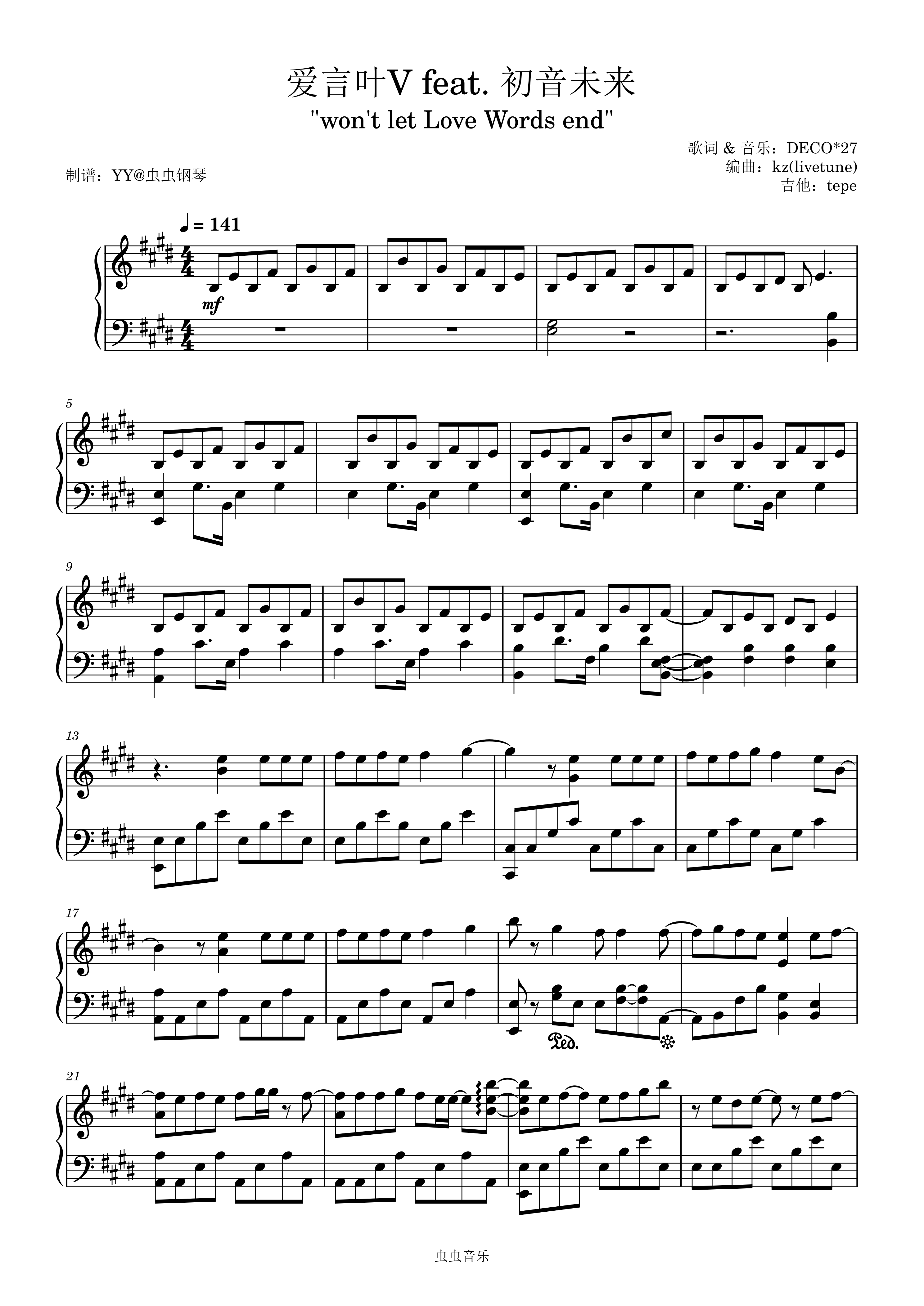 爱言叶V钢琴简谱 数字双手 DECO*27