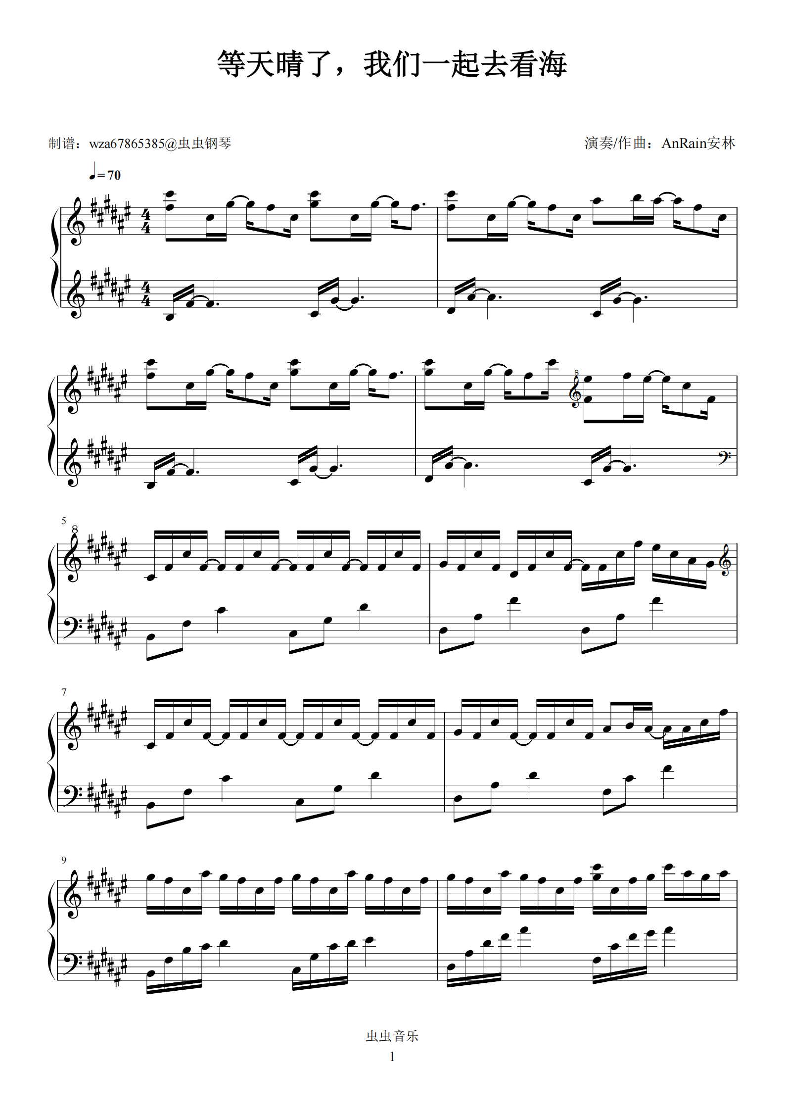 钢琴谱:等天晴了,我们一起去看海