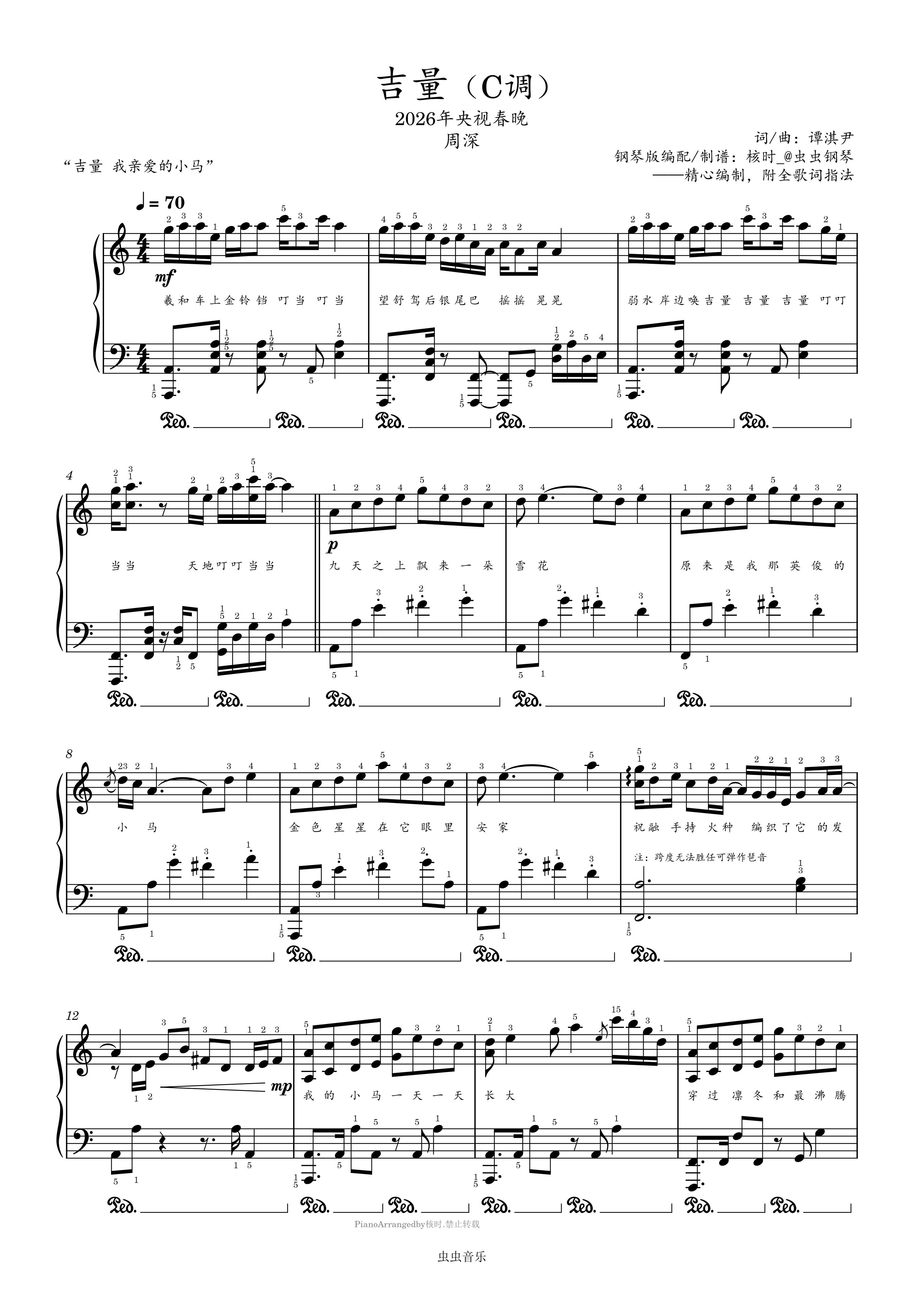 吉量 - 周深(C调,完美演奏版附歌词指法,2026央视春晚)【核时完整精编】震撼演奏!