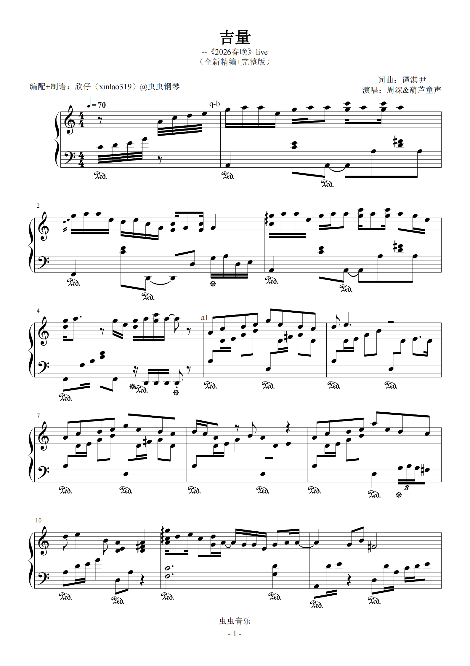 钢琴谱:吉量(C、周深《2026央视春晚》live、完整版)